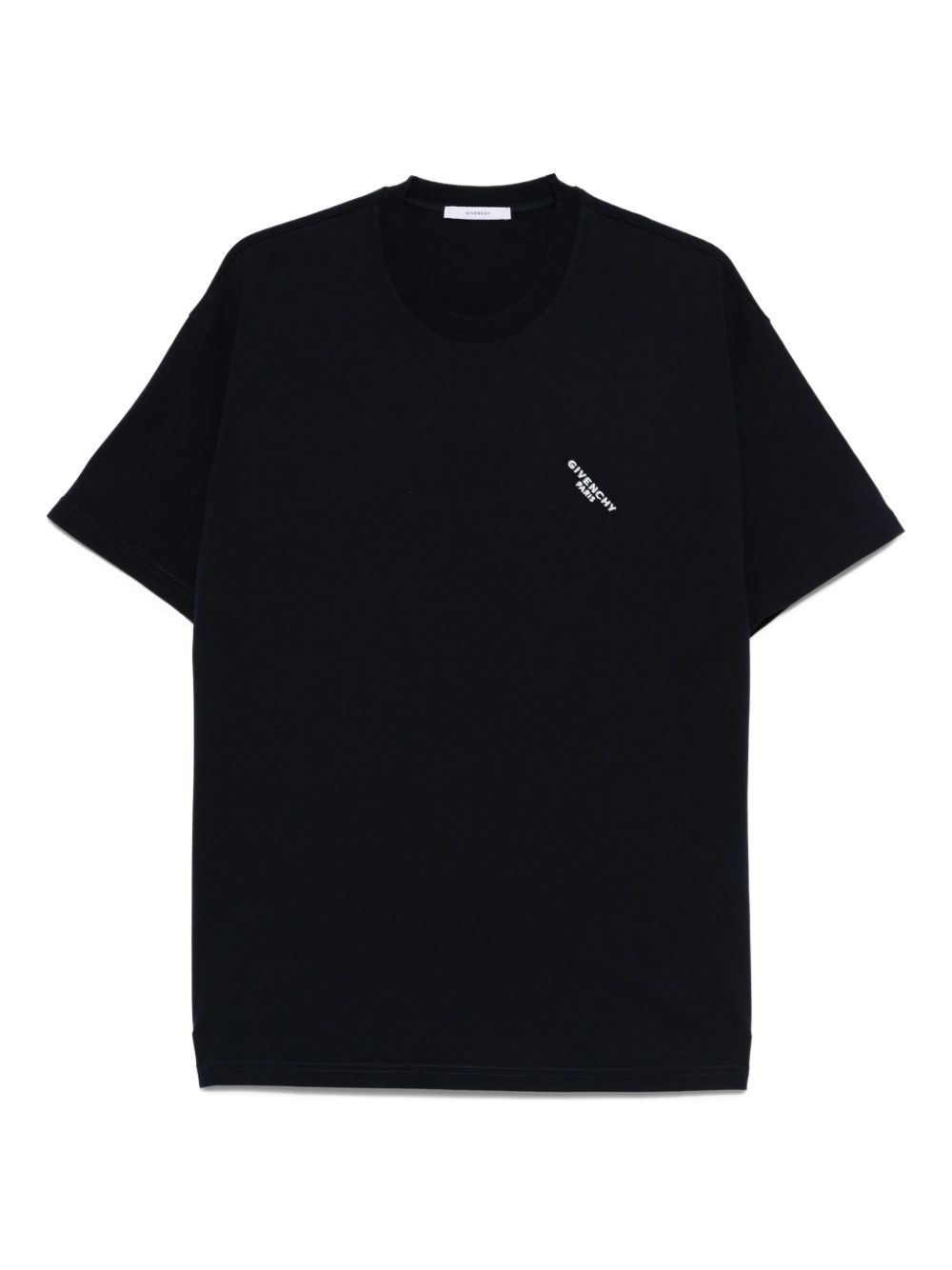 GIVENCHY blue cotton T-shirt with a crew neck and straight fit and embroidery on the front.