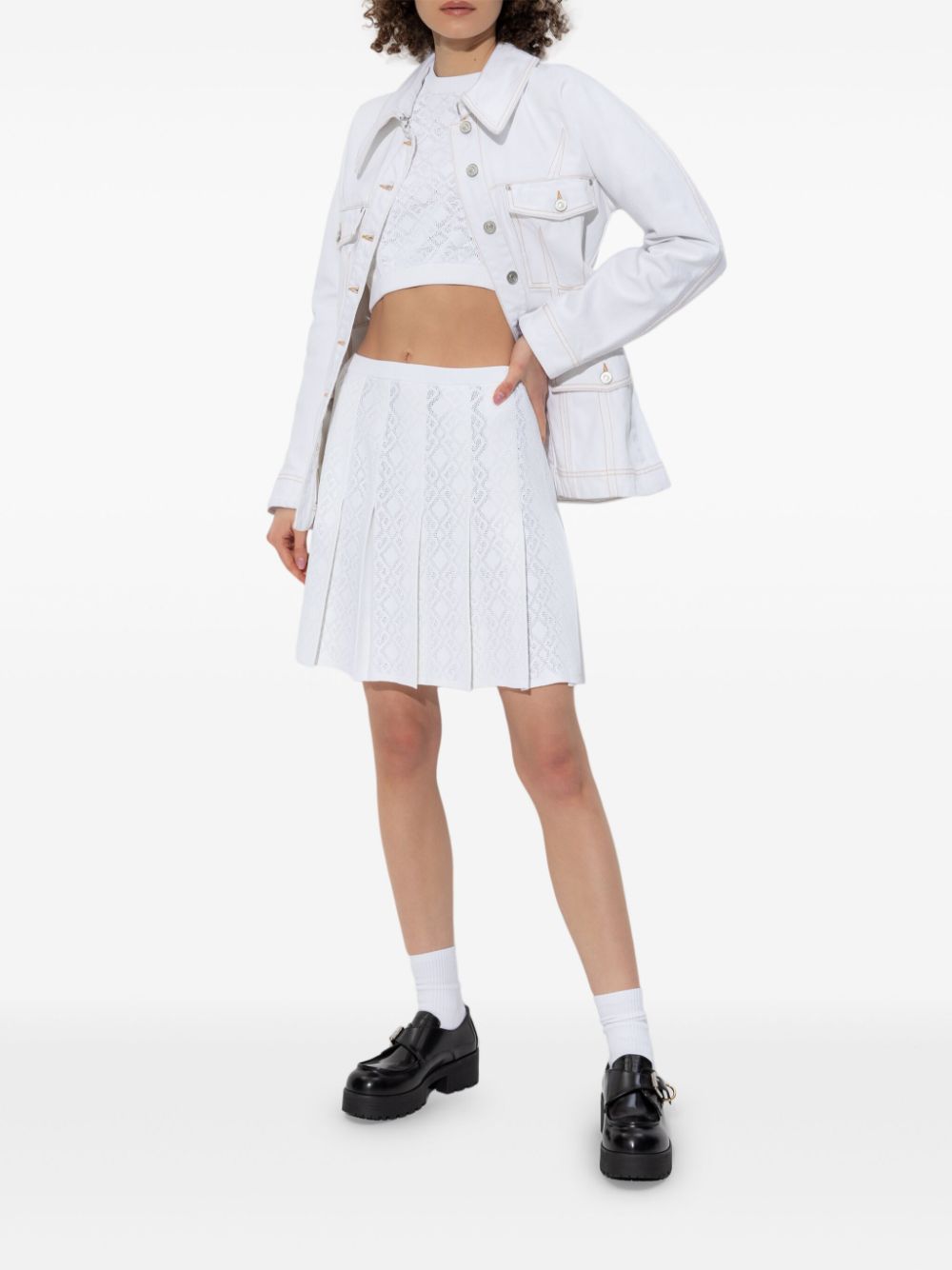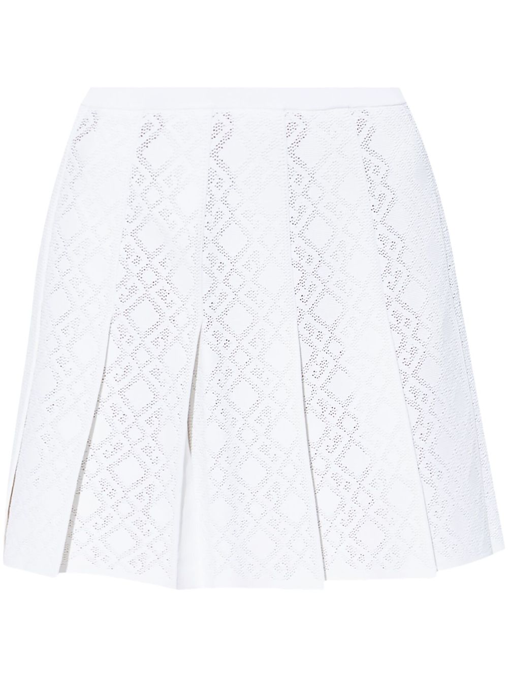 GIVENCHY white viscose pleated mini skirt with a ribbed waistband, a perforated-effect knit and a hidden side zip fastening.