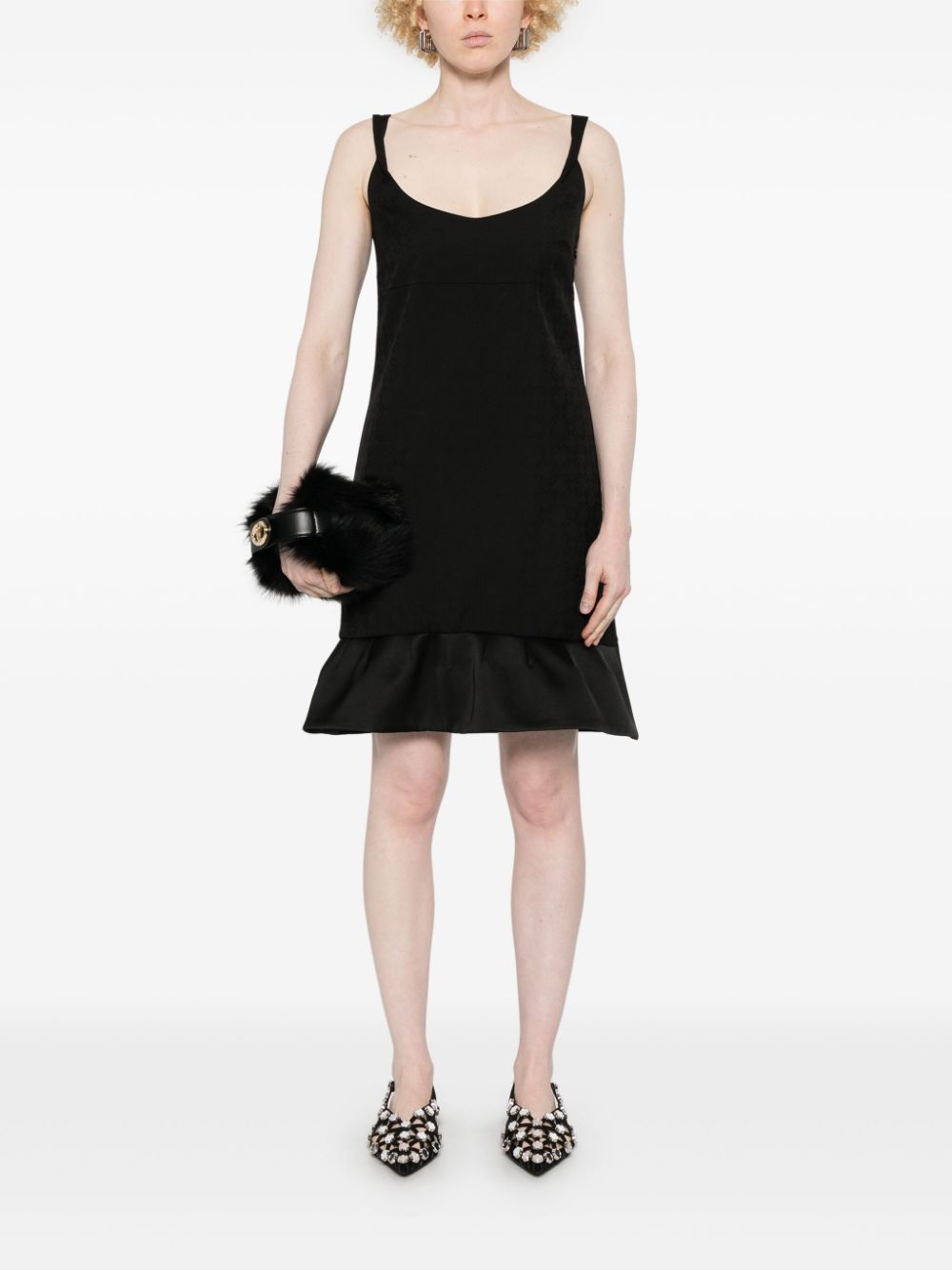 GIVENCHY black wool mini dress with twisted straps, a boat neckline, a gathered hem and an invisible zip fastening on the side.