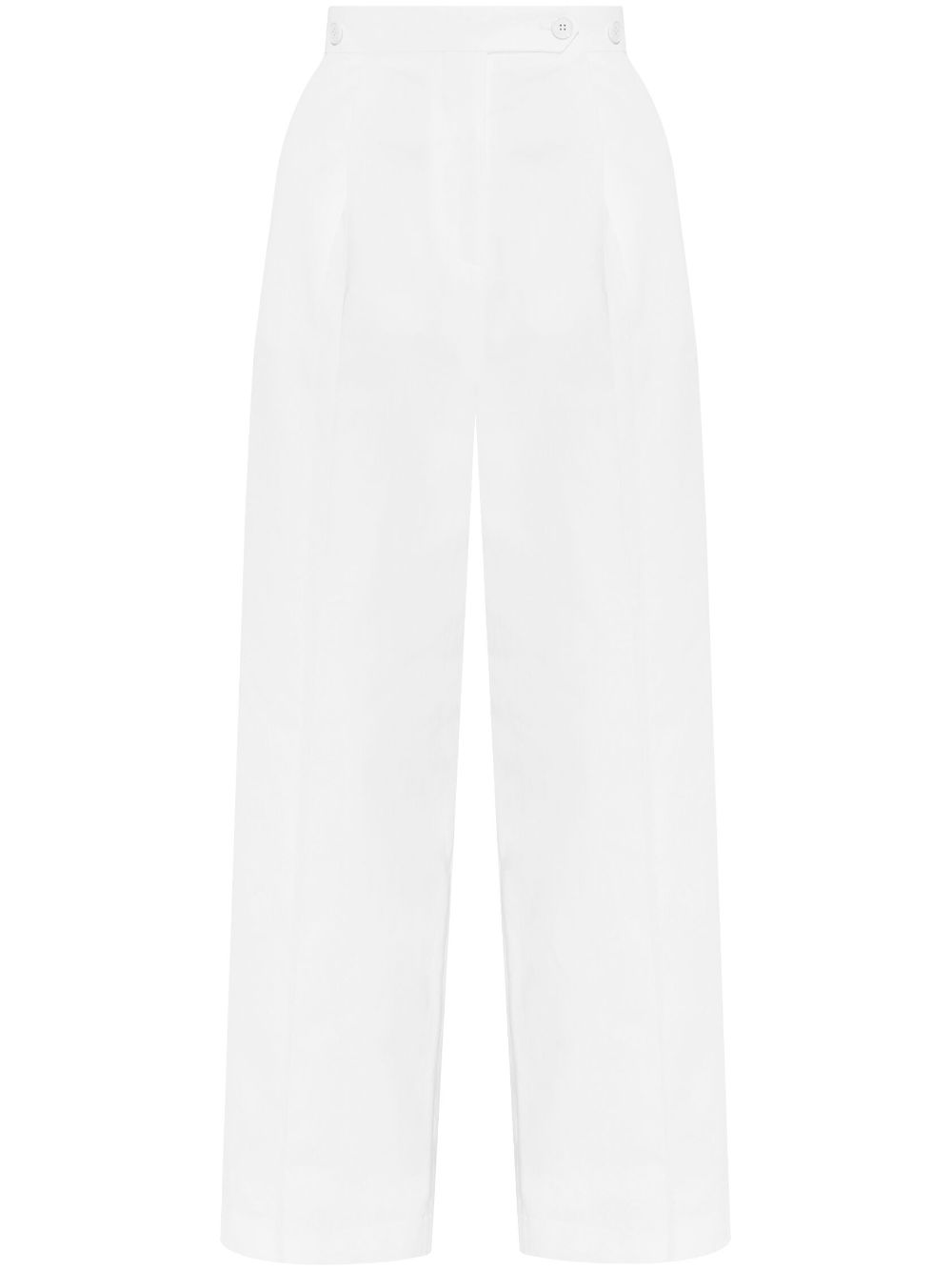 GIVENCHY white tailored trousers in cotton with side pockets, pleated details and an off-centre buttoning on the front.