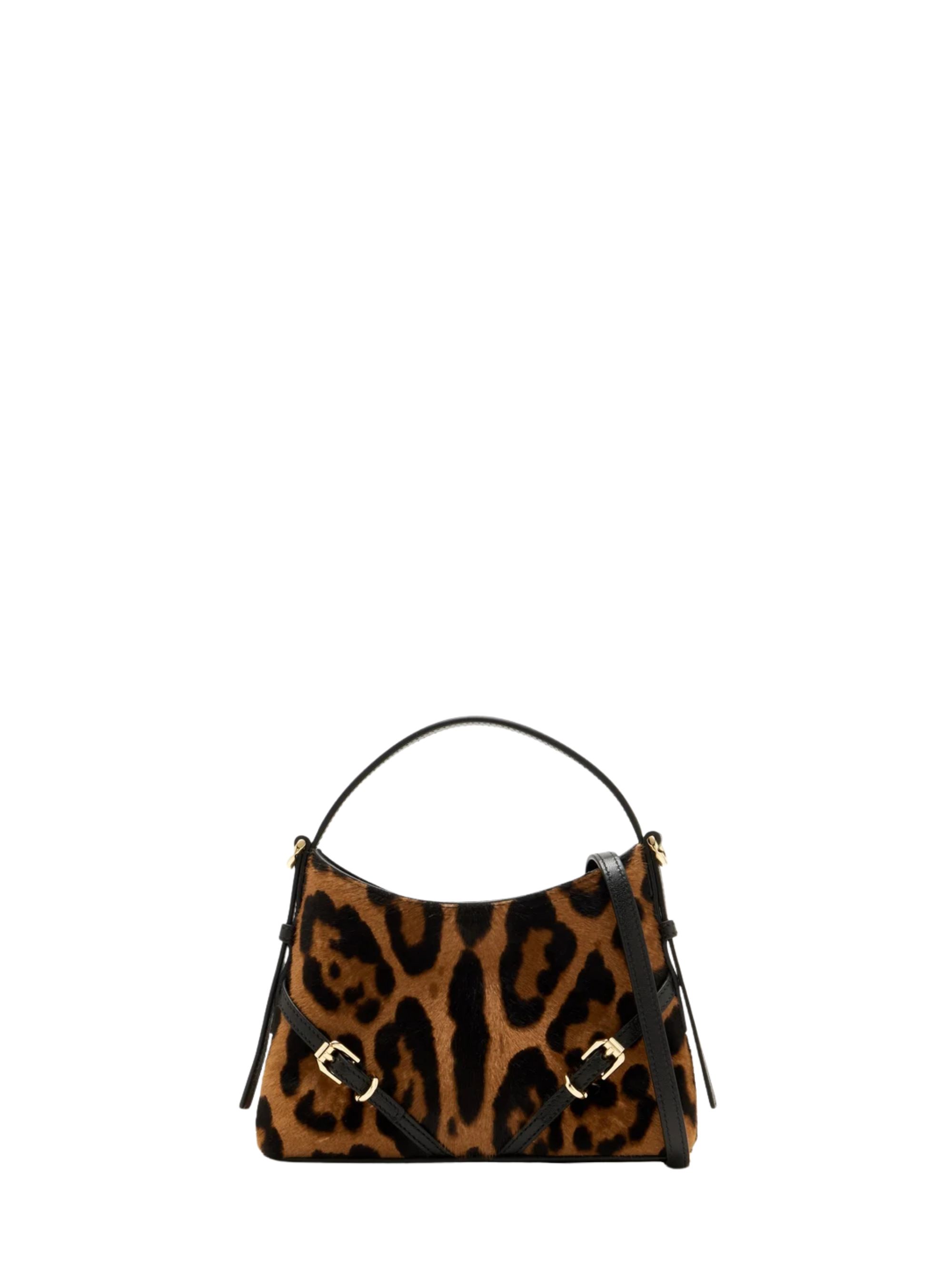 GIVENCHY Voyou Nano Pony Skin bag in multicolored ponyskin, featuring a removable and adjustable shoulder strap, a strap detail on the front, and gold hardware. Dimensions: 18 x 13.5 x 3.5 cm.