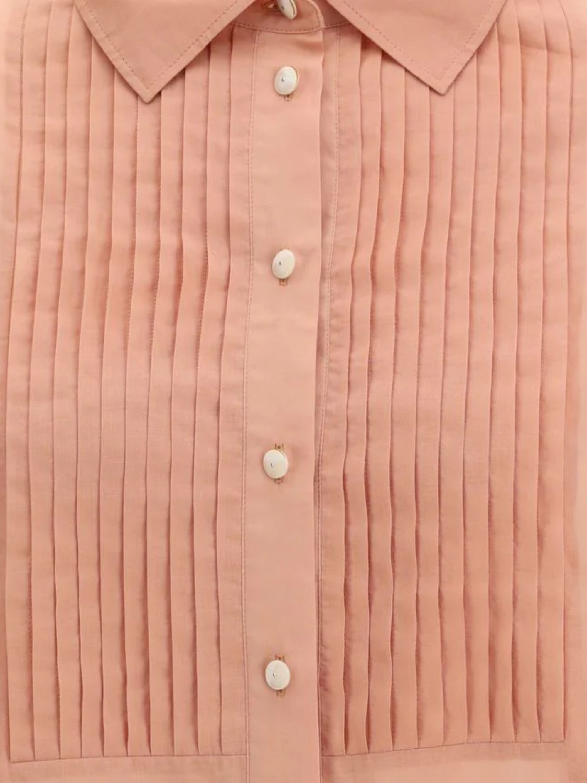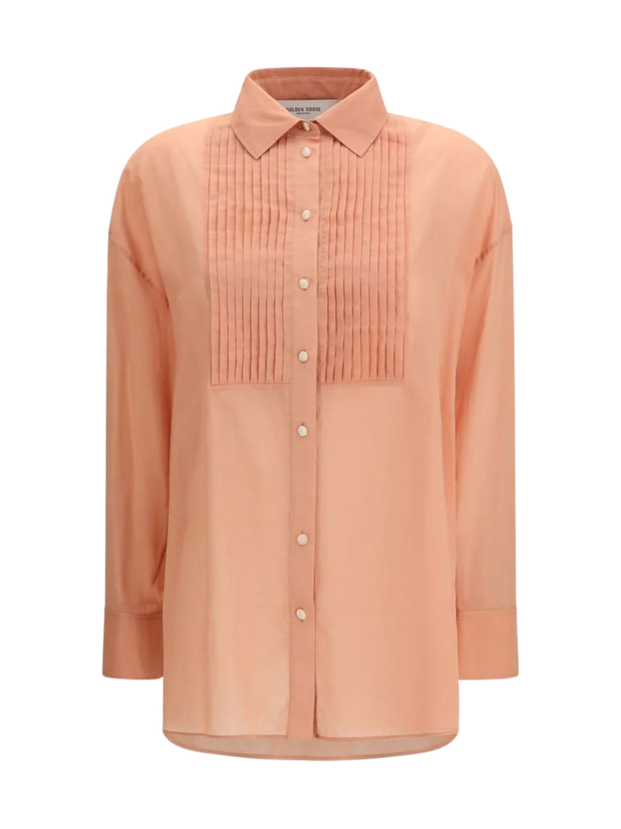 Pink GOLDEN GOOSE cotton shirt featuring a button fastening, long sleeves, classic collar and semi-sheer pleated cotton bib.