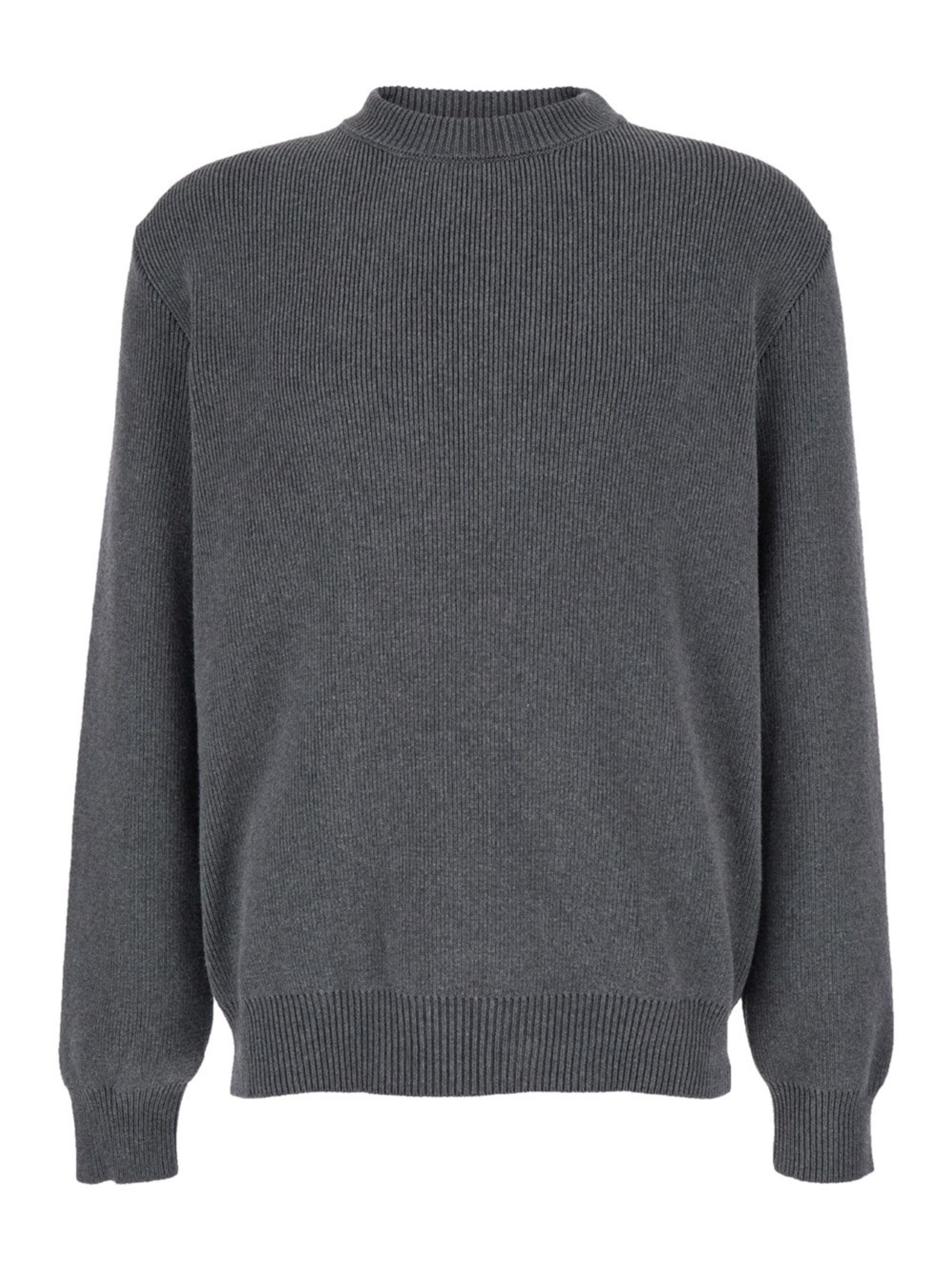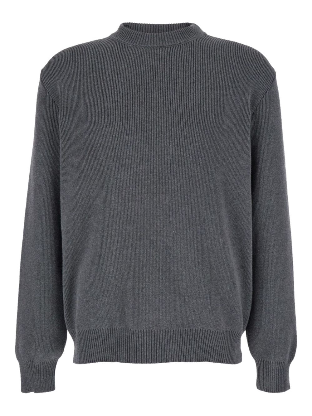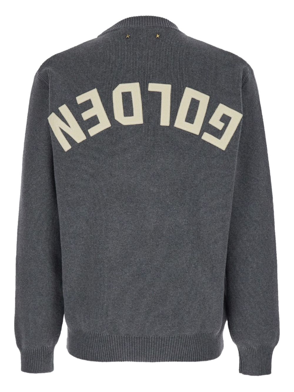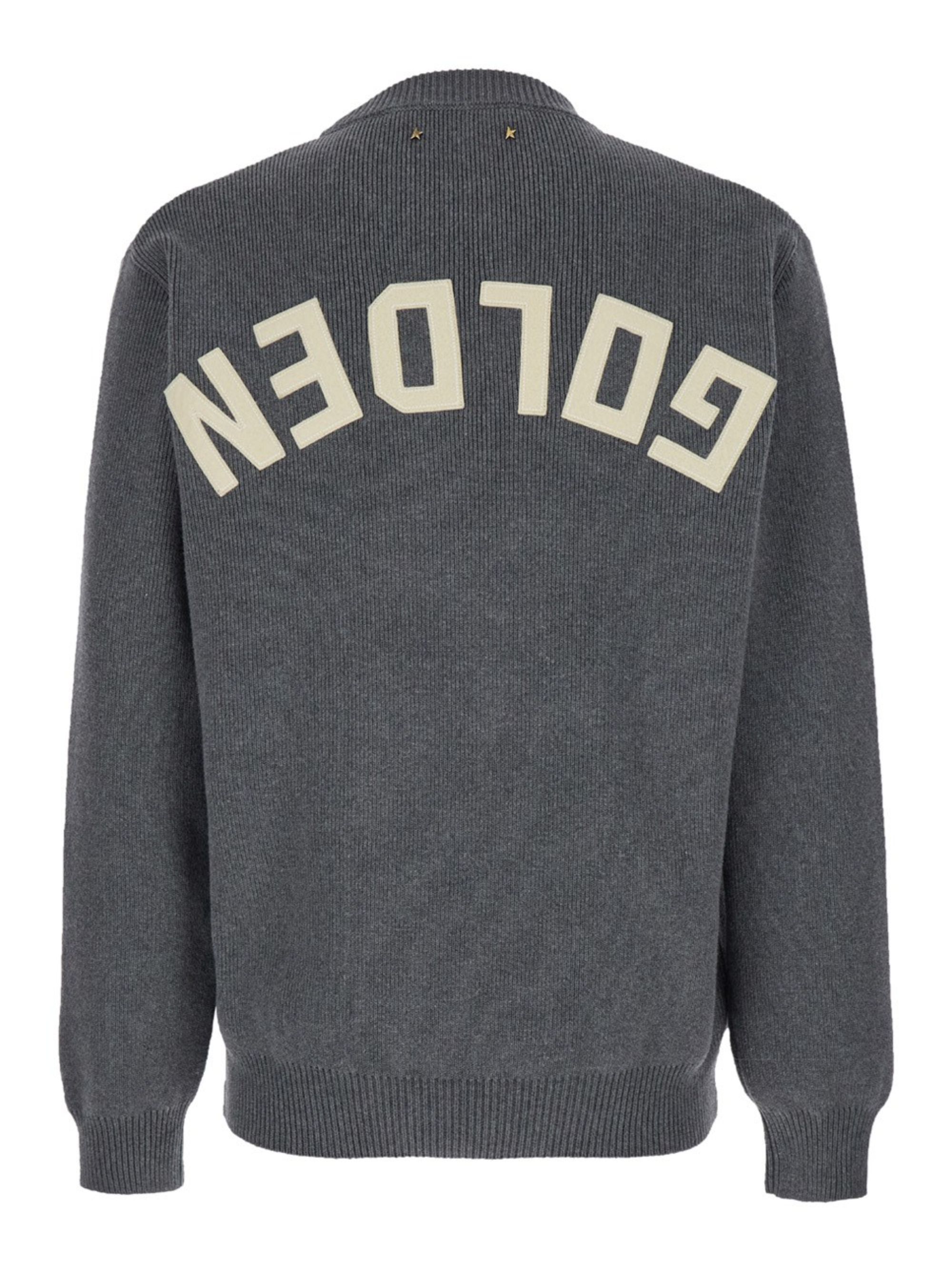 Crew neck sweater by GOLDEN GOOSE in grey cotton, featuring ribbed finishes, long sleeves and applied patch detail.