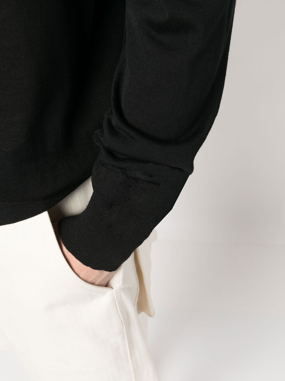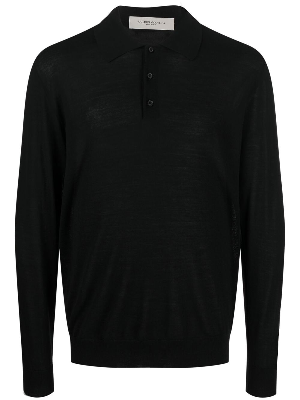 GOLDEN GOOSE black polo shirt with a knitted design, polo-style collar, long sleeves, and a straight hem.
