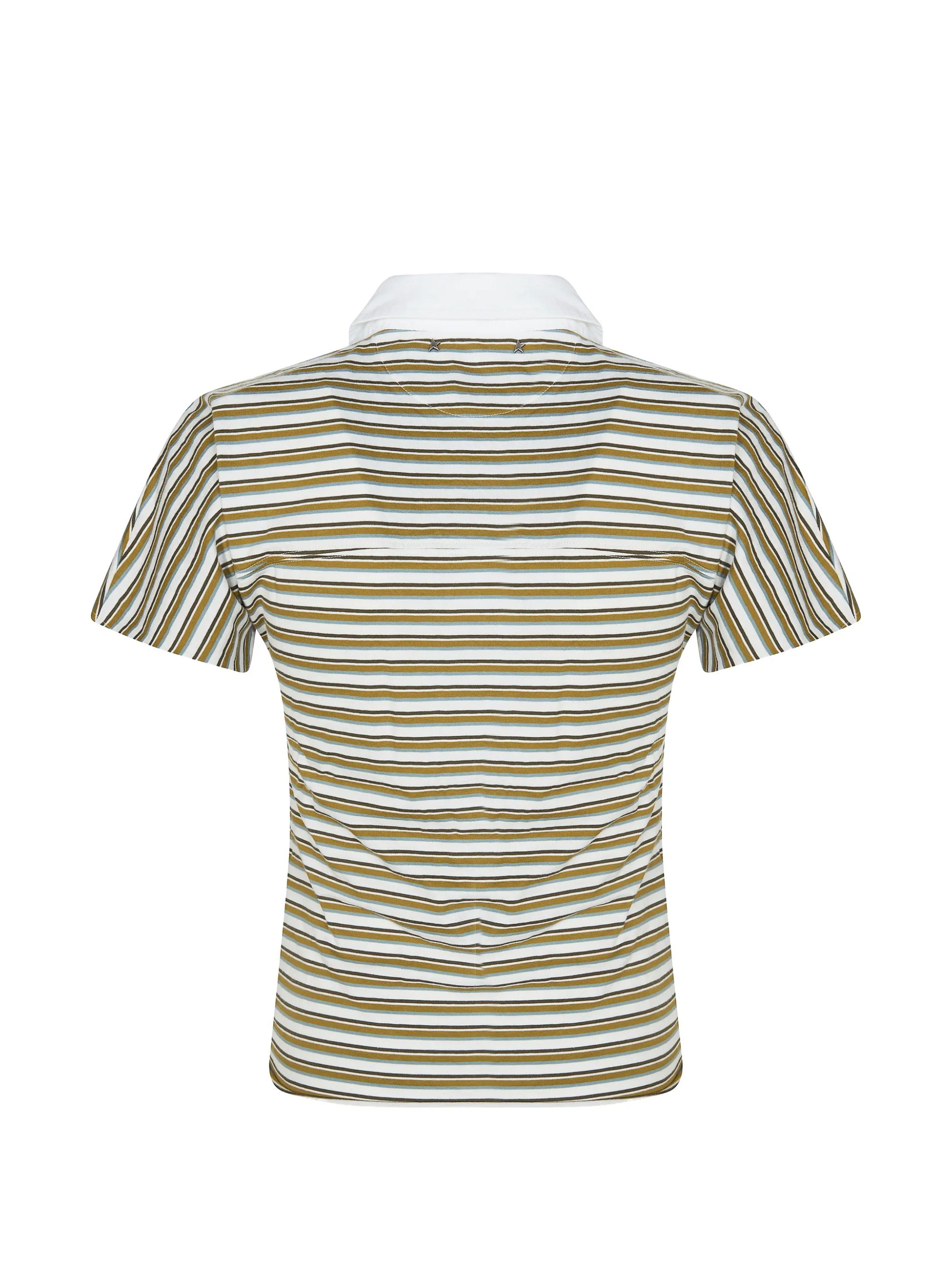 Multicolor striped polo shirt by GOLDEN GOOSE, featuring a classic white collar, button fastening, embroidered logo on the chest and short sleeves.