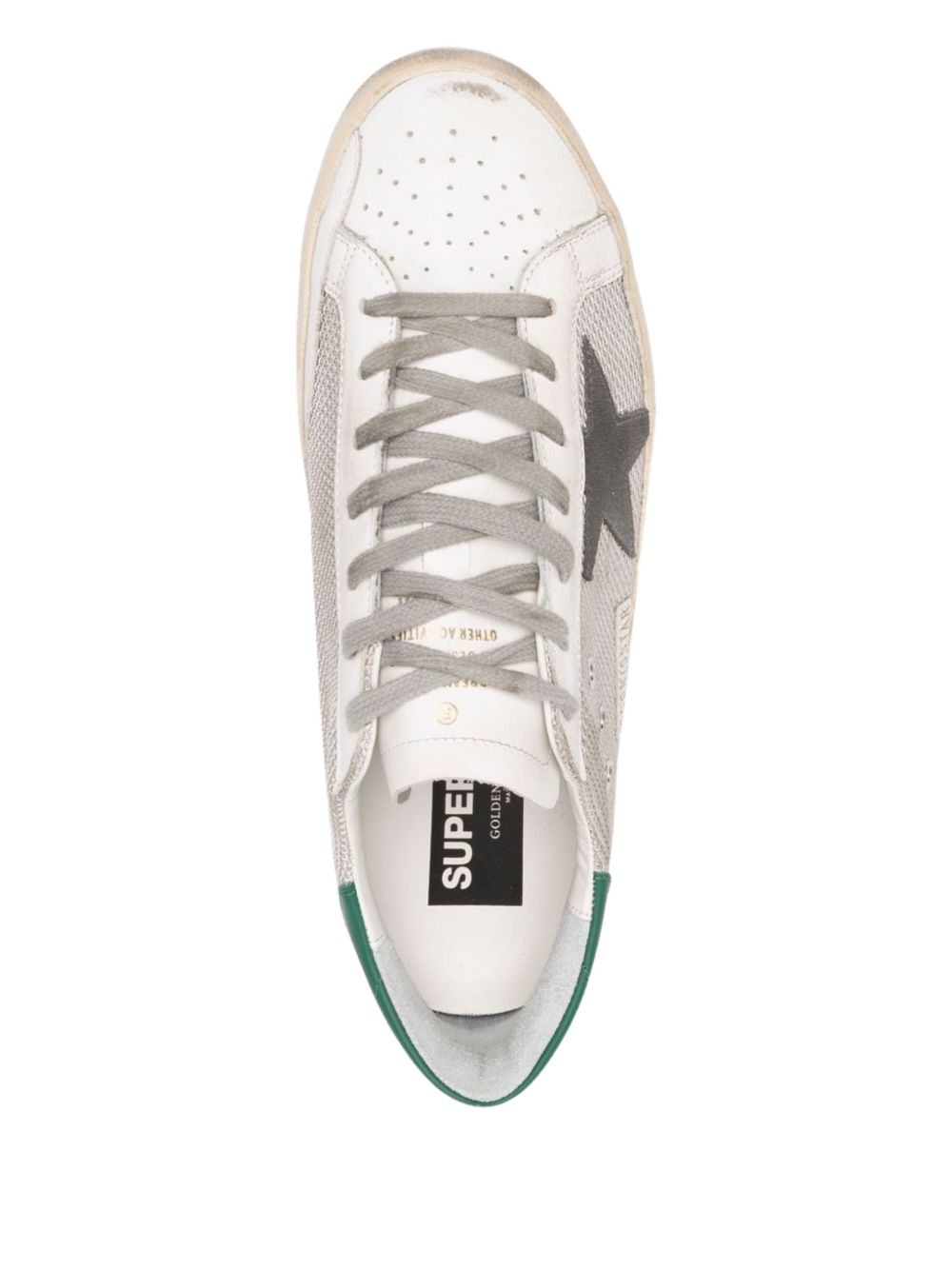 Multicolor Superstar sneaker by GOLDEN GOOSE in leather, featuring lace-up fastening, logo on the tongue, contrasting star on the side, green detail on the heels, rubber sole and mesh panels.