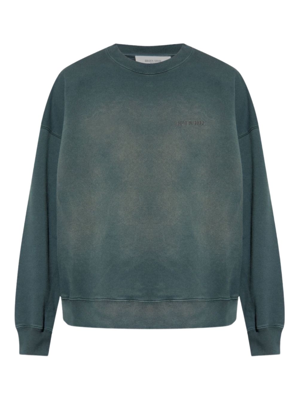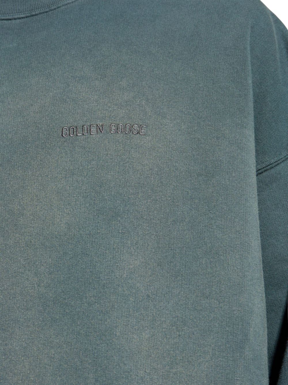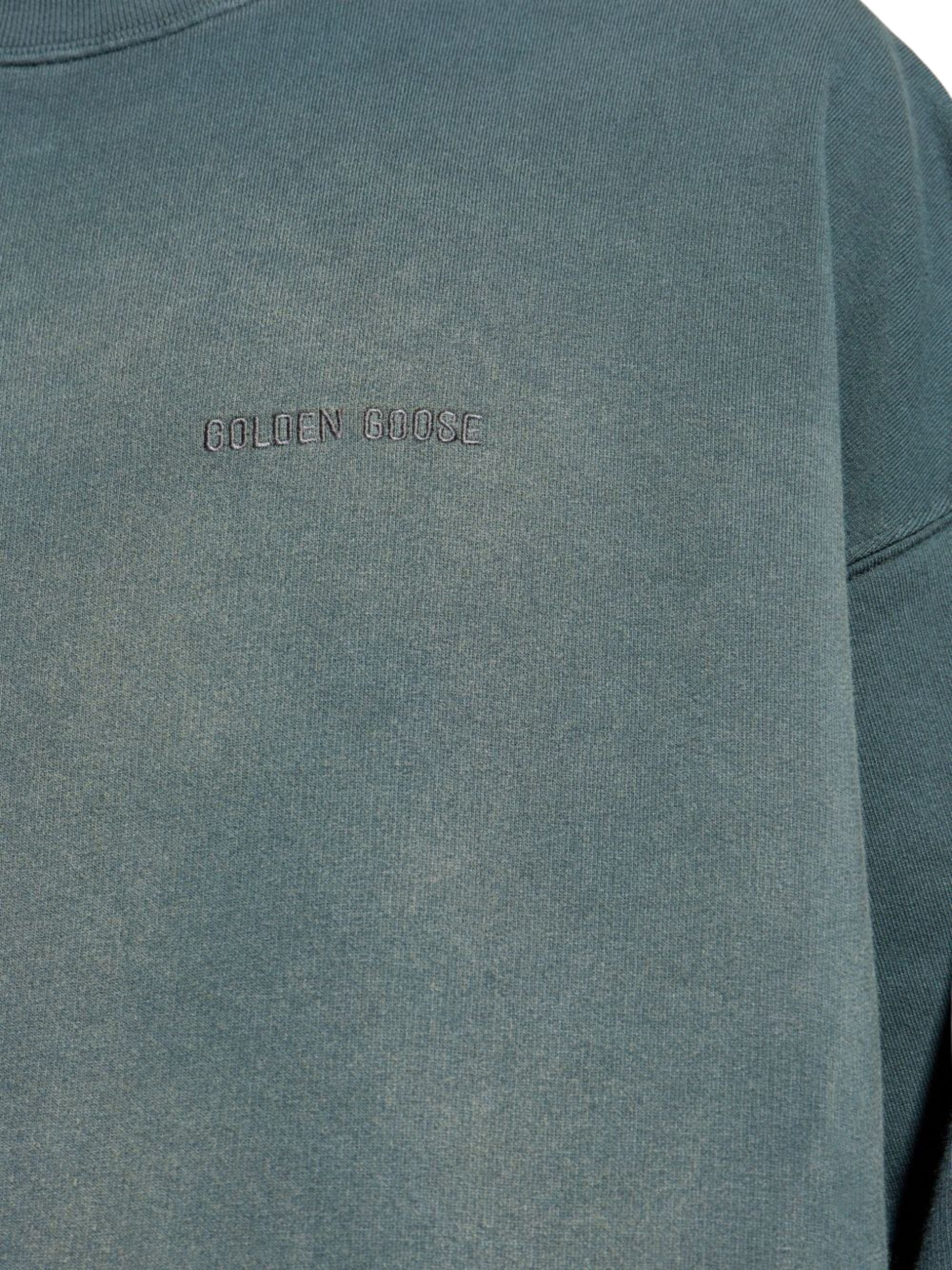 Black cotton logo sweatshirt by GOLDEN GOOSE, featuring a crew neck, logo detail and ribbed finishes.