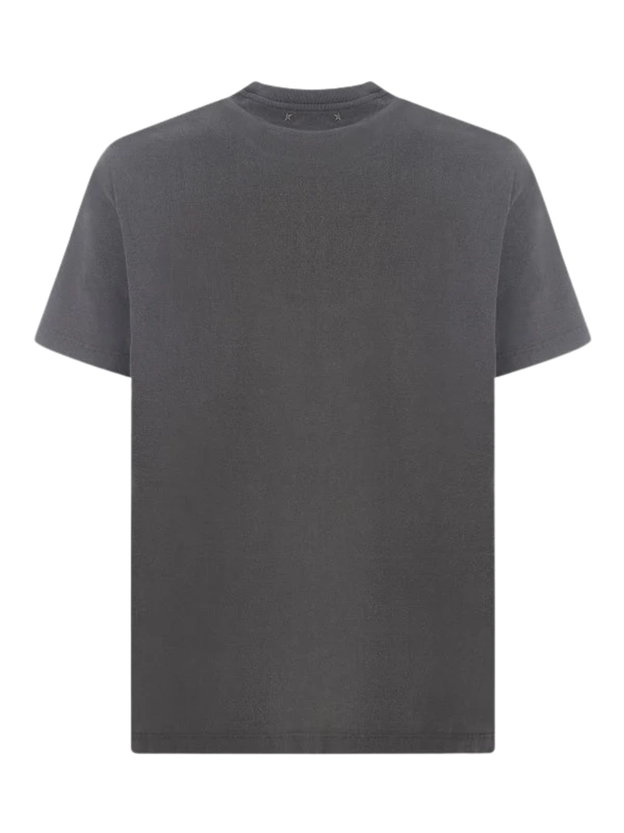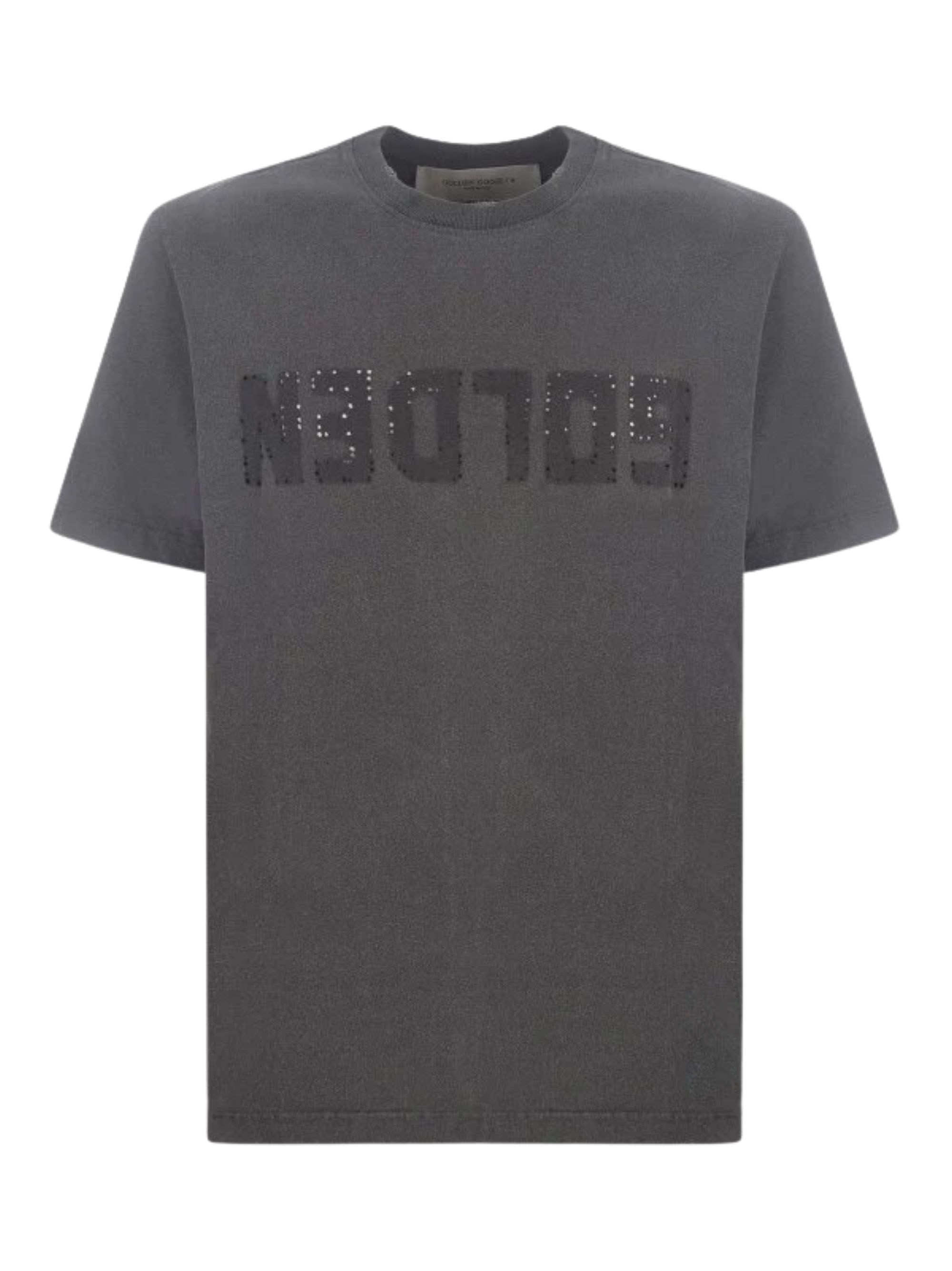 GOLDEN GOOSE grey cotton logo T-shirt featuring a vintage effect, used-effect detail, perforated logo on the front, crew neck and short sleeves.