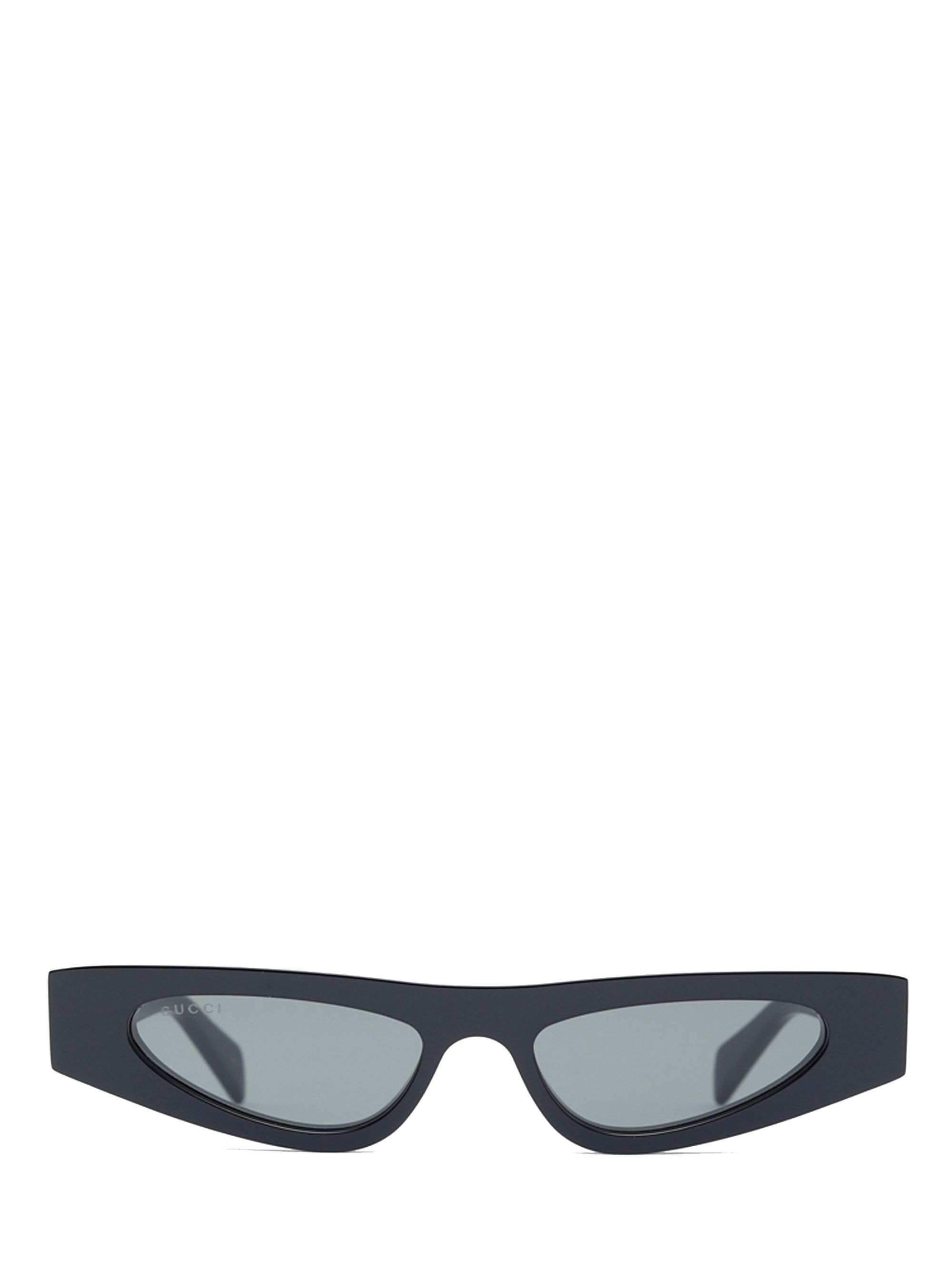 GUCCI black cat-eye sunglasses in acetate with gray UV lenses and sculpted temples.