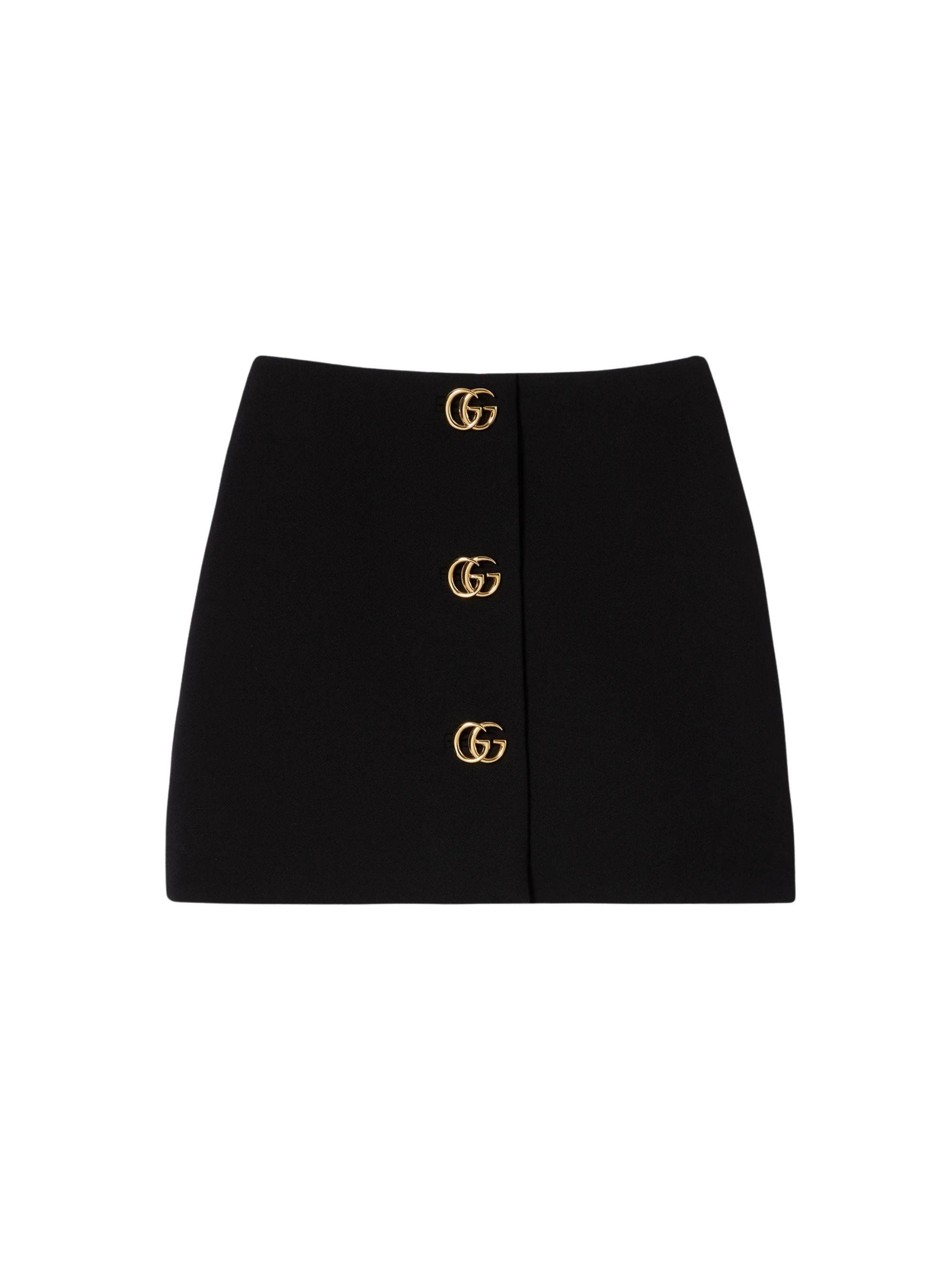 GUCCI black Double G wool skirt featuring a hidden zip fastening at the back, GG Double G button and lining.