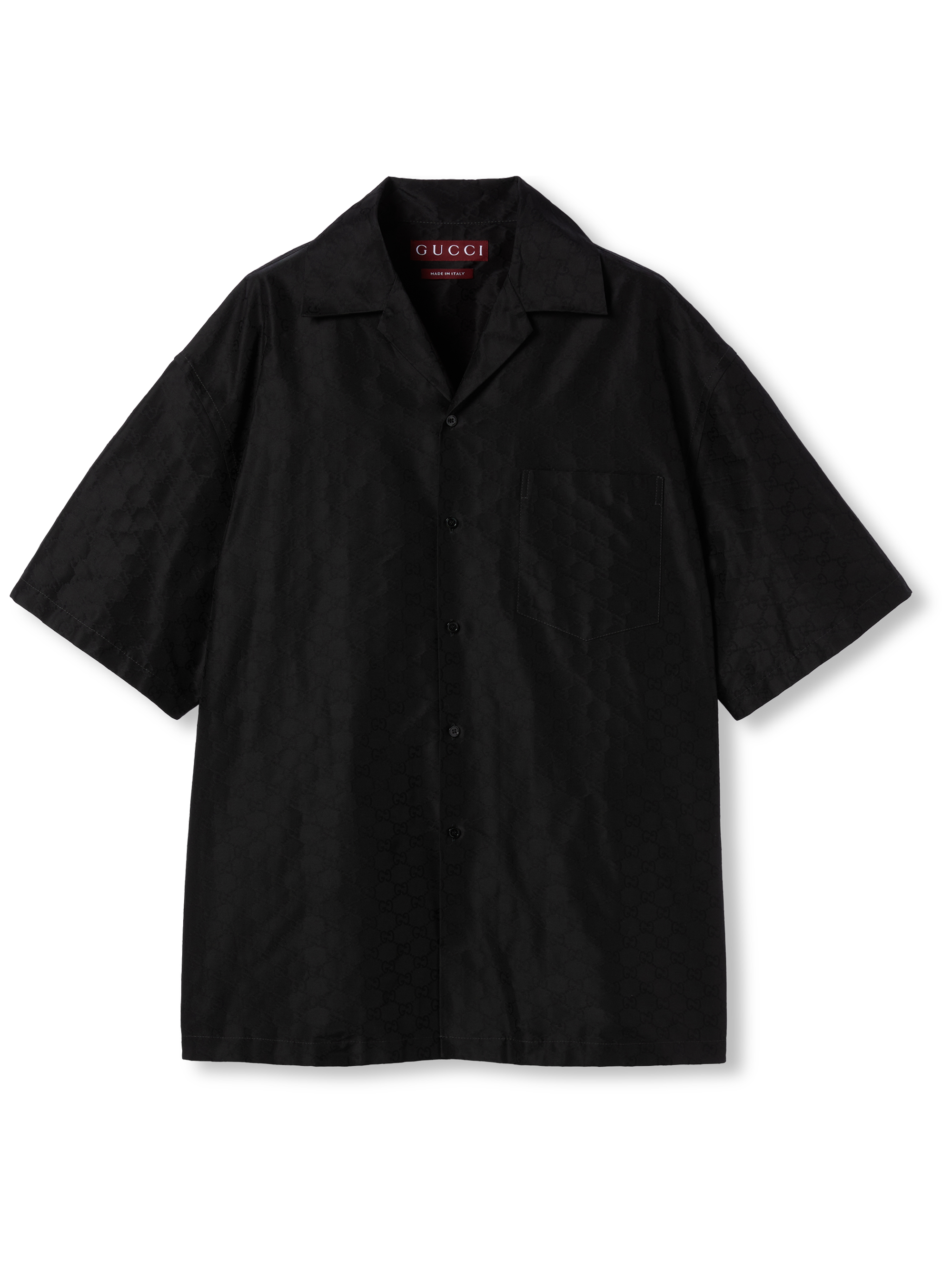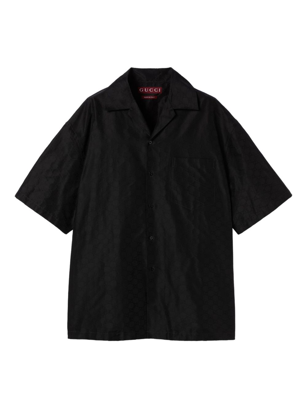GUCCI Faille shirt in black cotton and silk blend with short sleeves, chest pocket, back yoke and front button fastening.