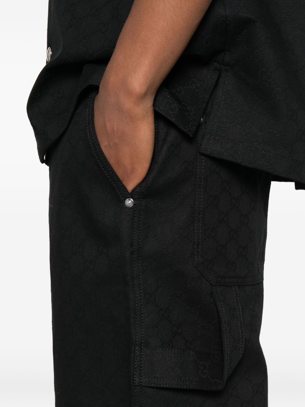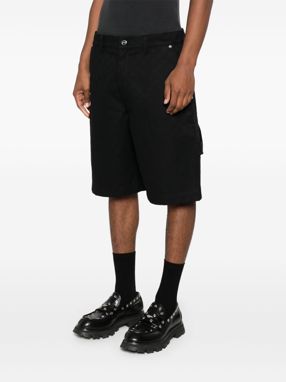 Black GUCCI Bermuda shorts featuring a zip and button closure, belt loops, and a multi-pocket design.