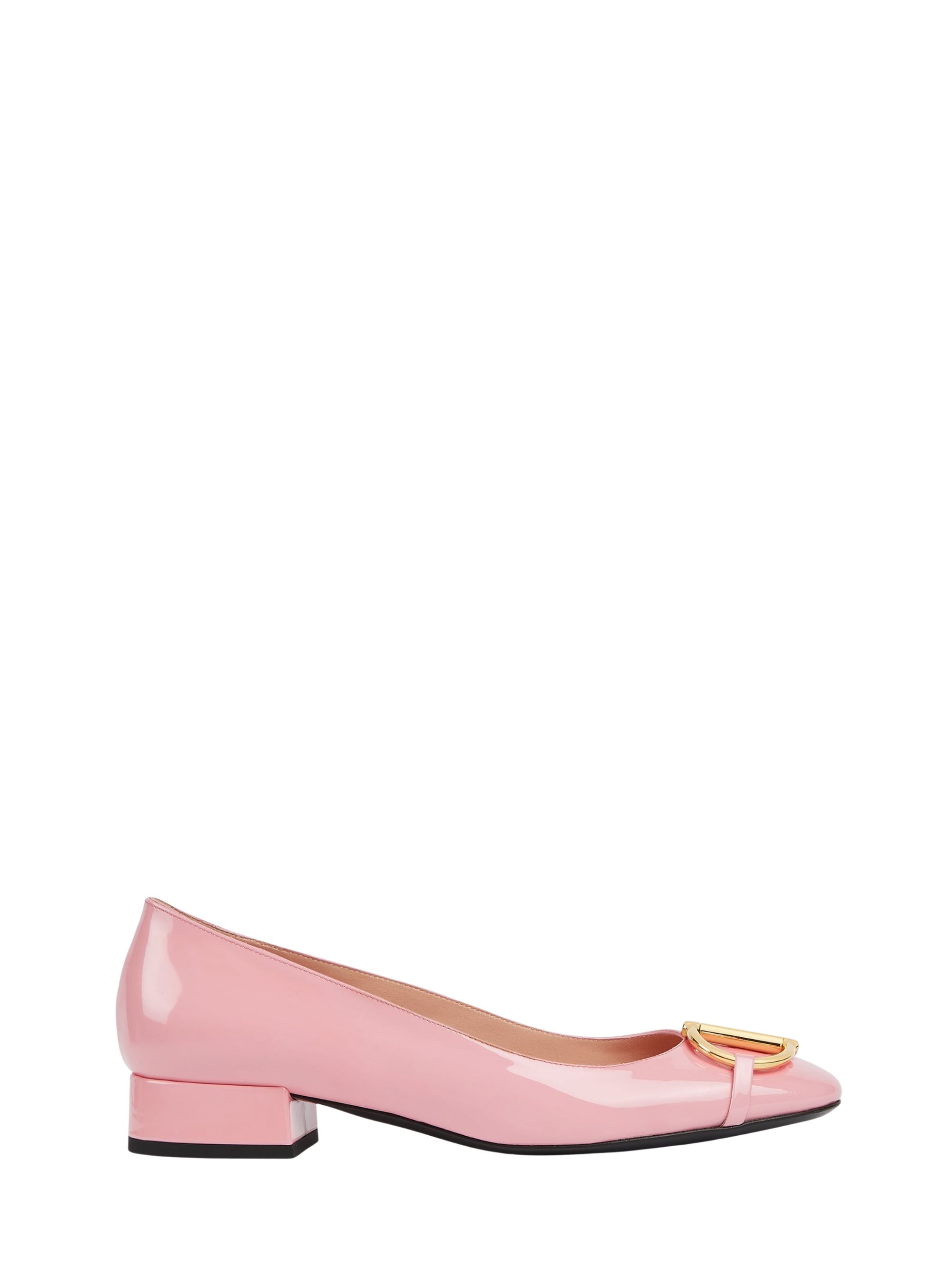 GUCCI pink Horsebit ballerina flat in patent leather with a large half Horsebit, a leather sole, and a 25mm low heel.