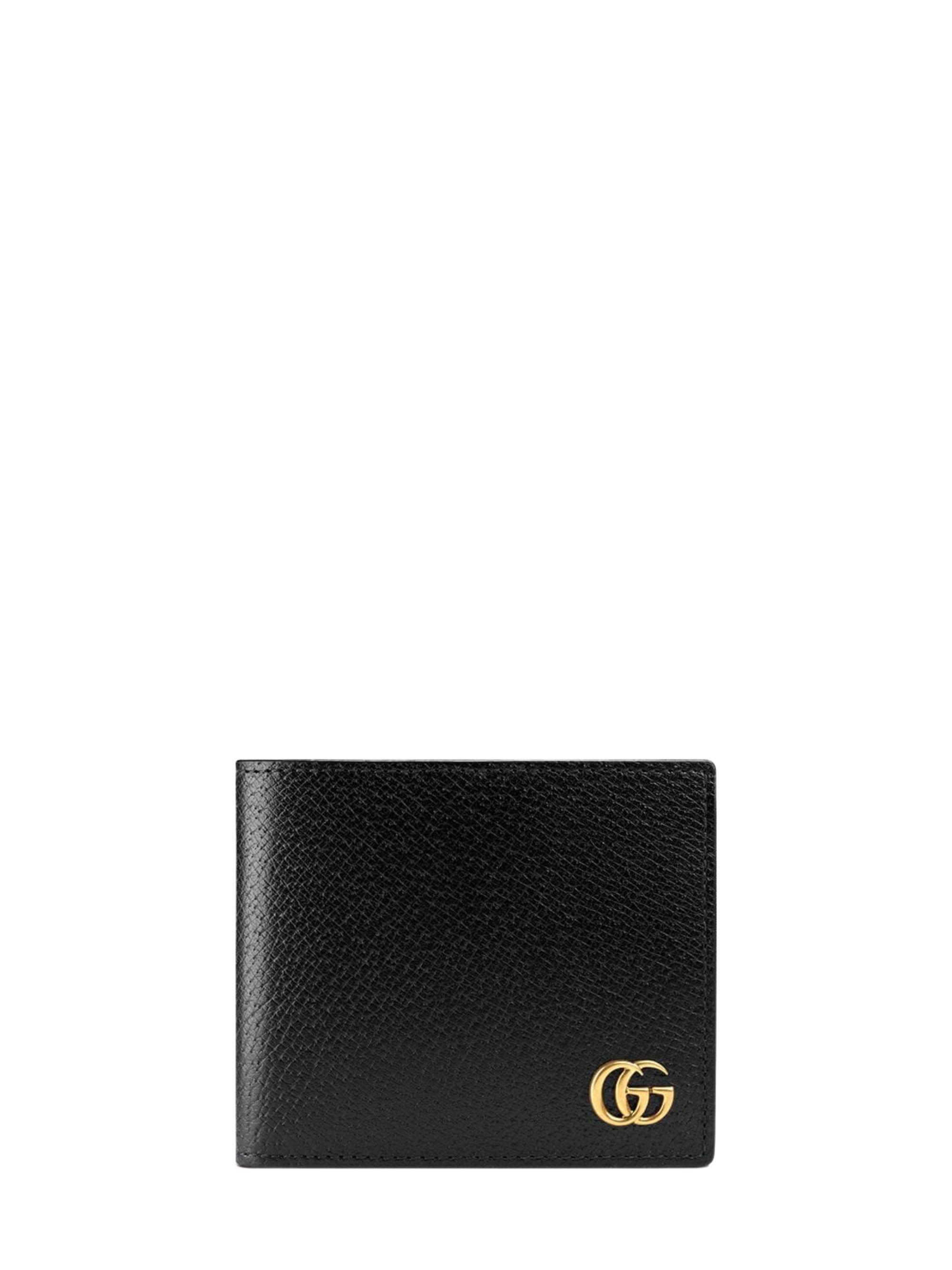 GUCCI black bi-fold wallet featuring interlocking G hardware in textured calfskin.