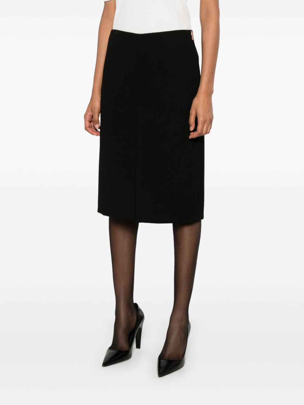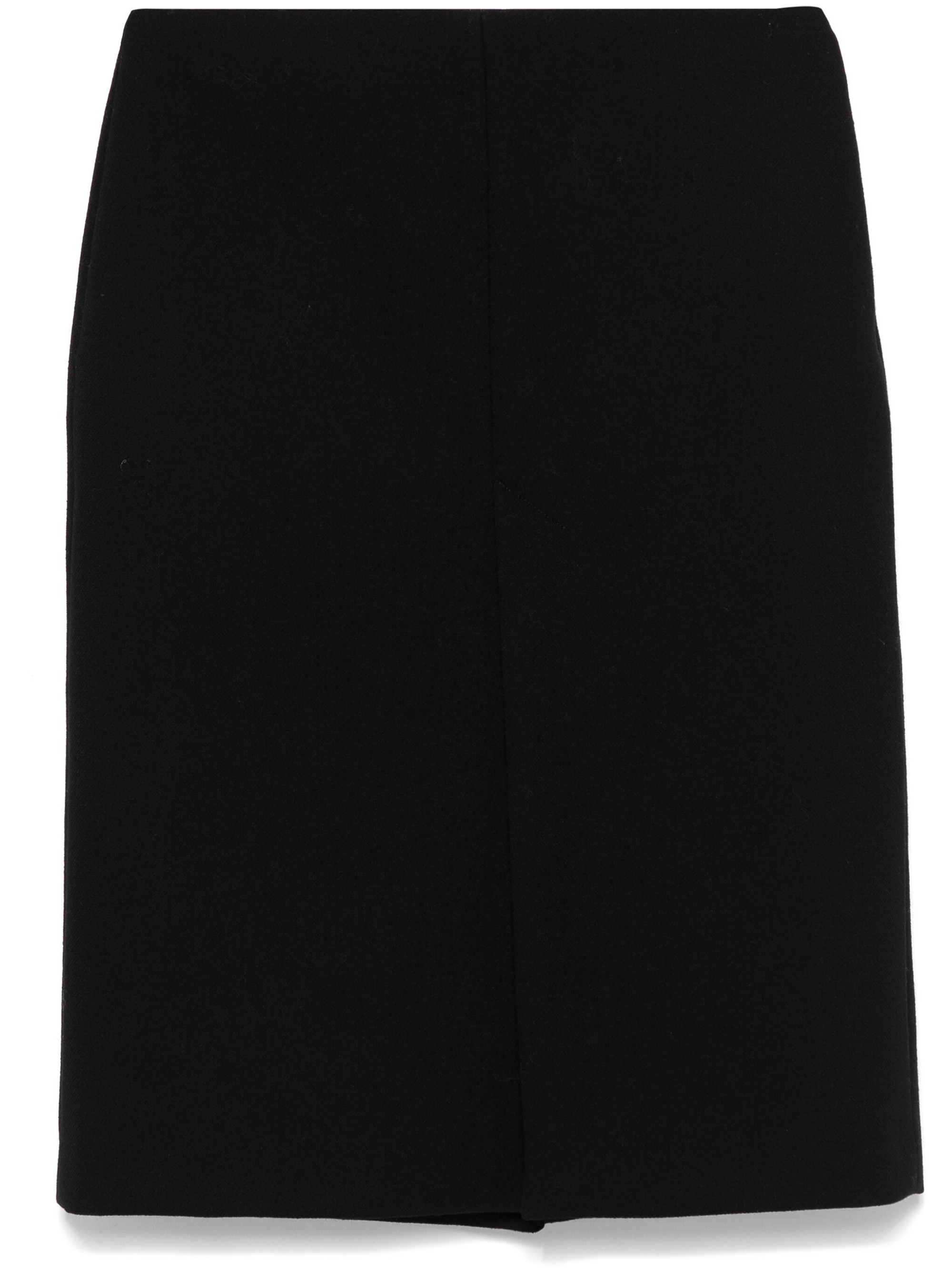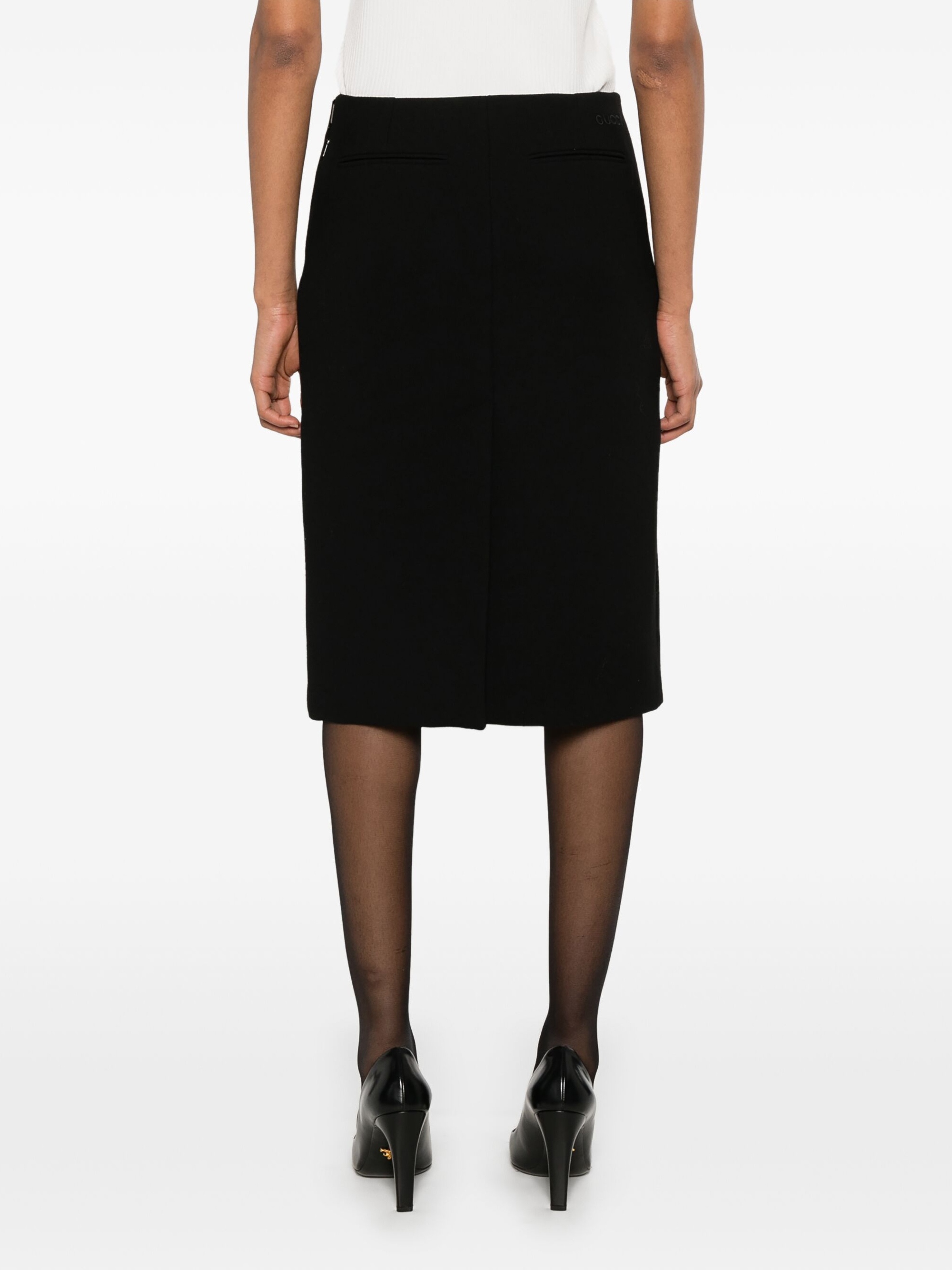 GUCCI black wool midi skirt with front vent, logo on the back, hidden back pockets, full lining and side zip and hidden hook fastening.