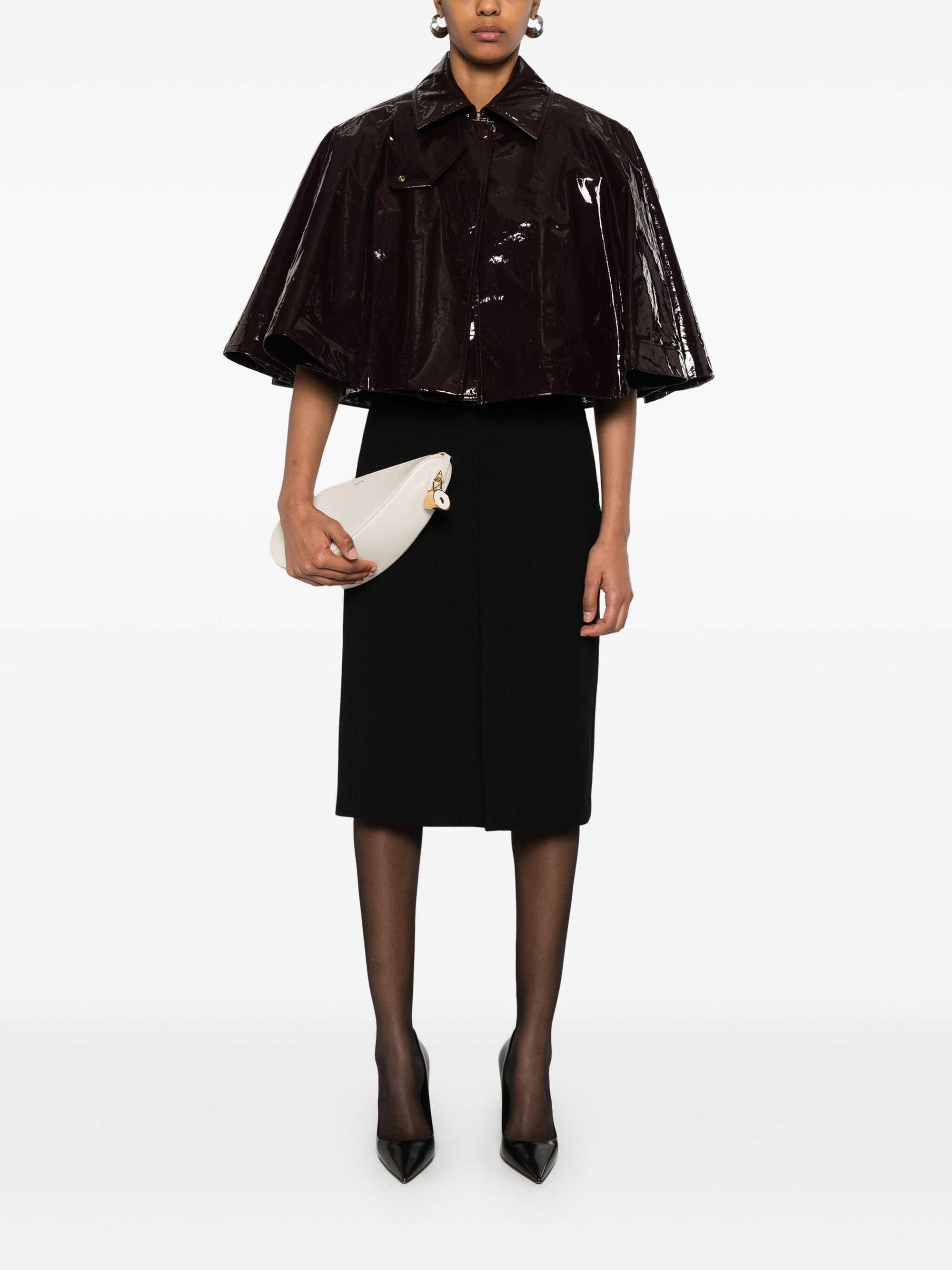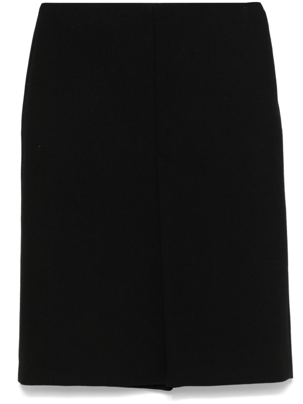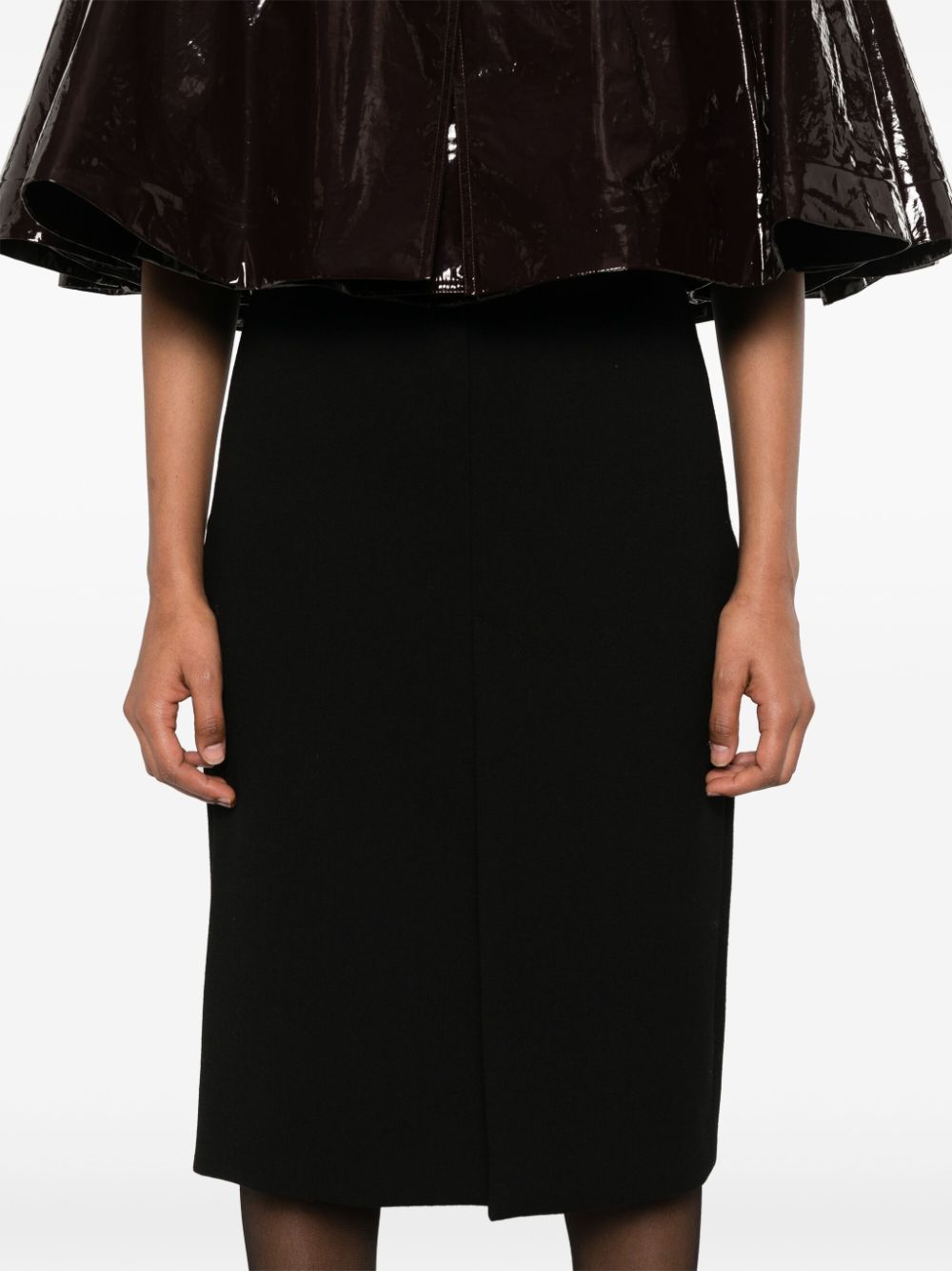 GUCCI black wool midi skirt with front vent, logo on the back, hidden back pockets, full lining and side zip and hidden hook fastening.