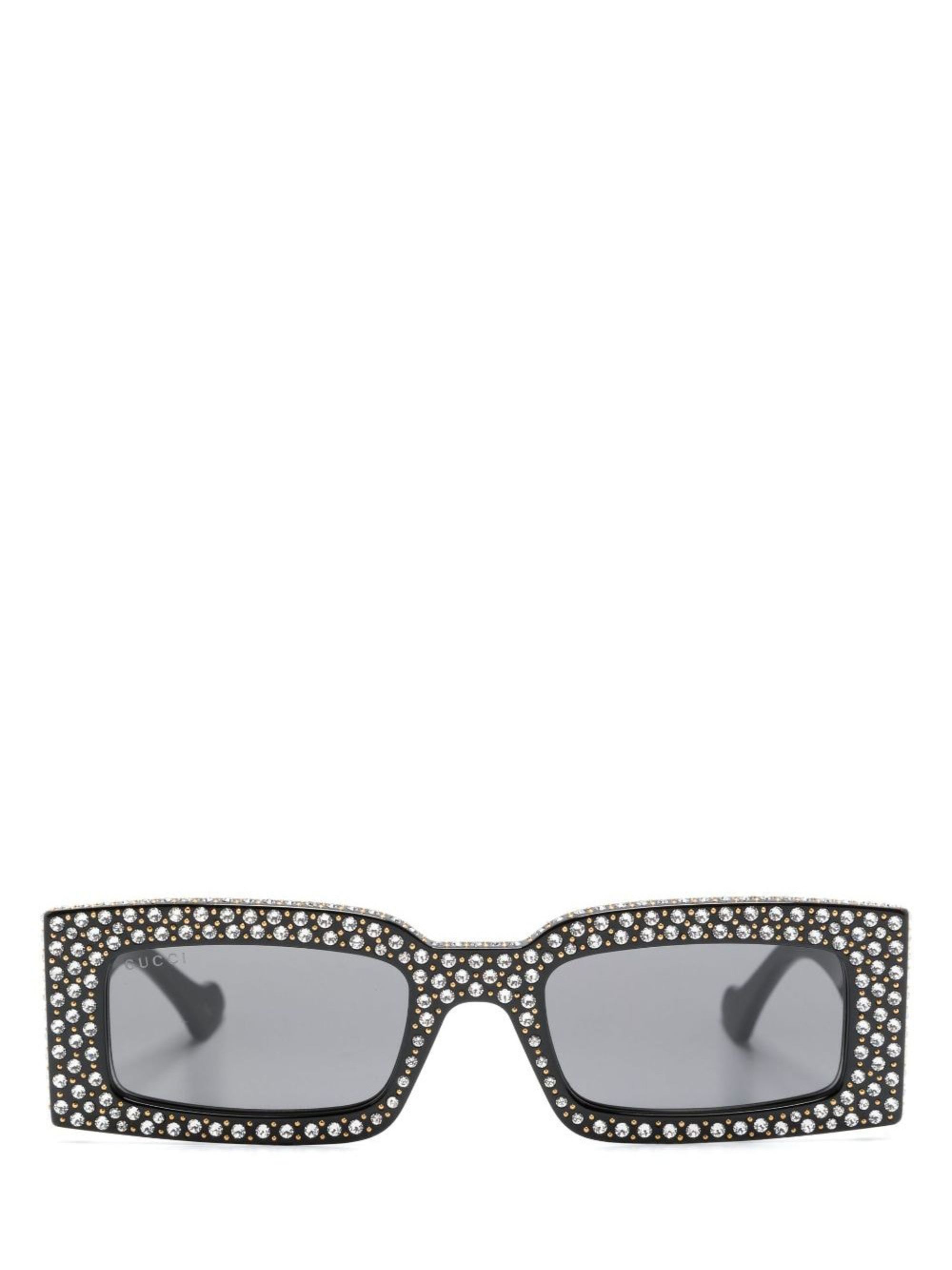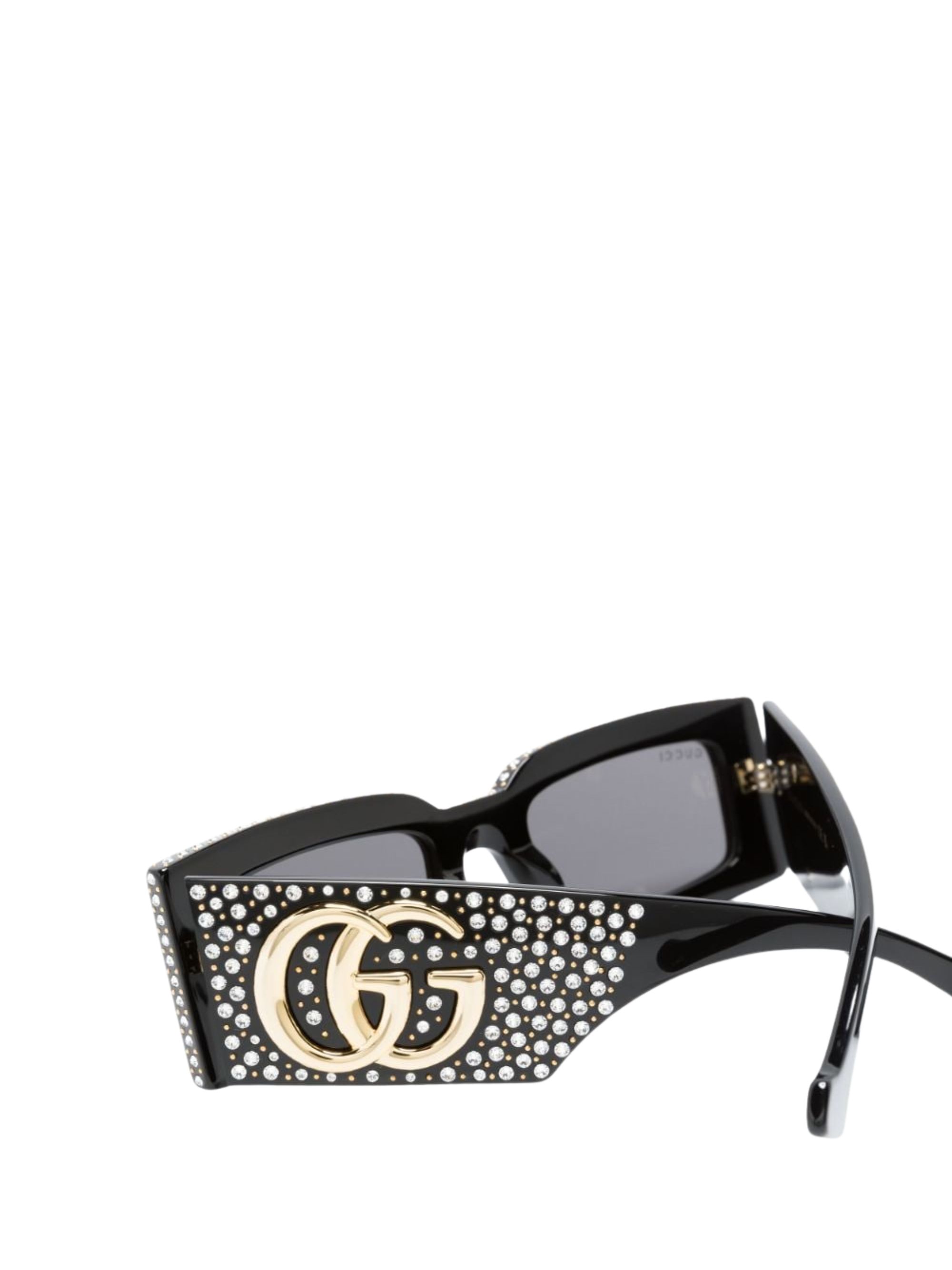 Sunglasses with GG logo from GUCCI featuring a frame with diamond detail, logo on the side and black lenses.