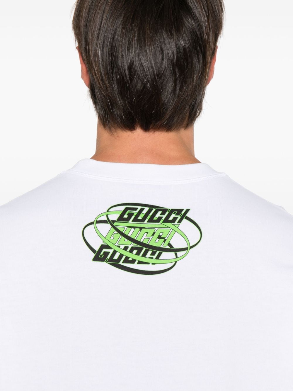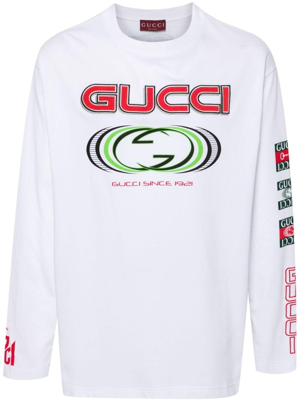 White GUCCI print T-shirt in cotton with crew neck, logo print, long sleeves and logo print on the back.