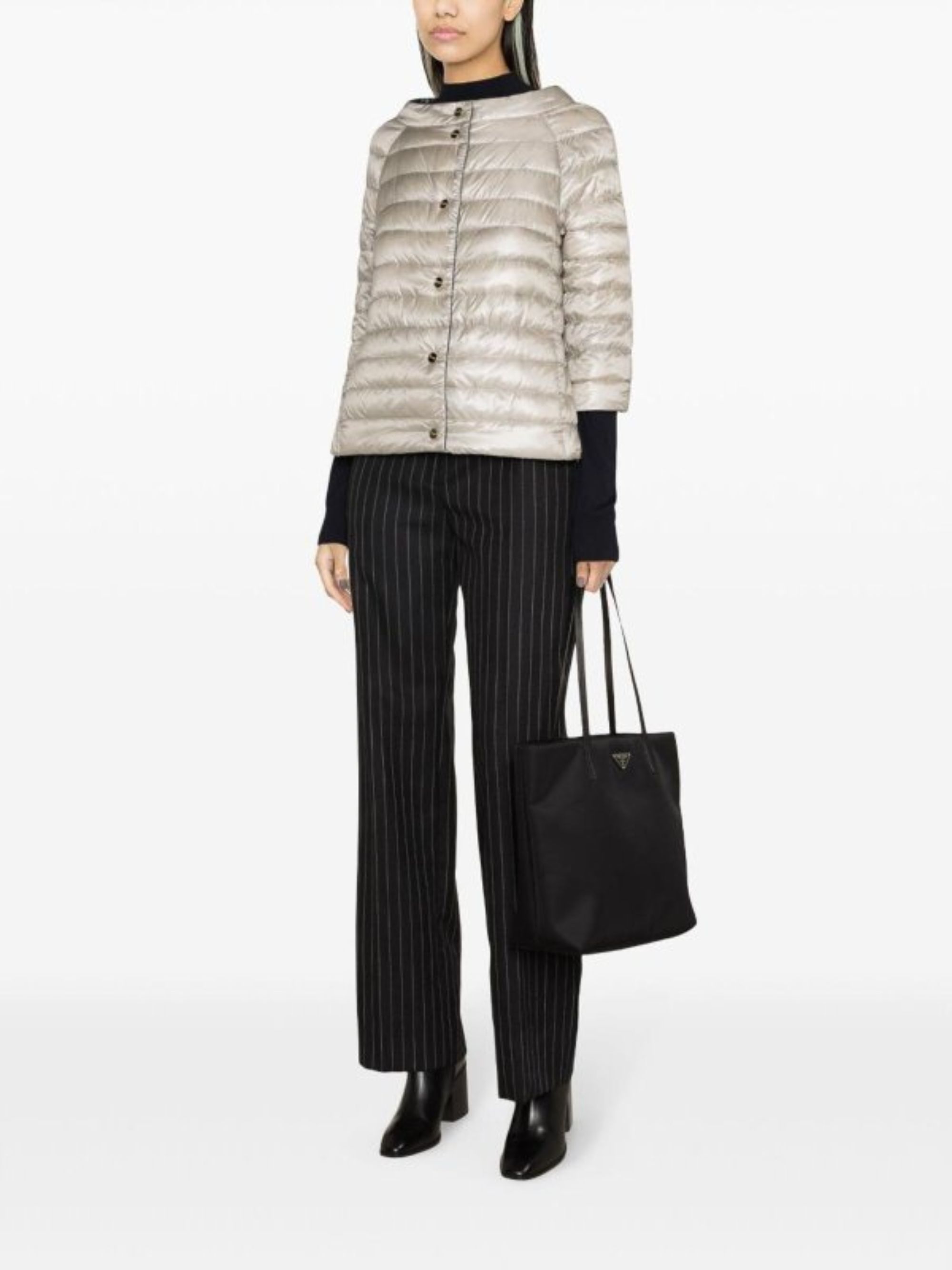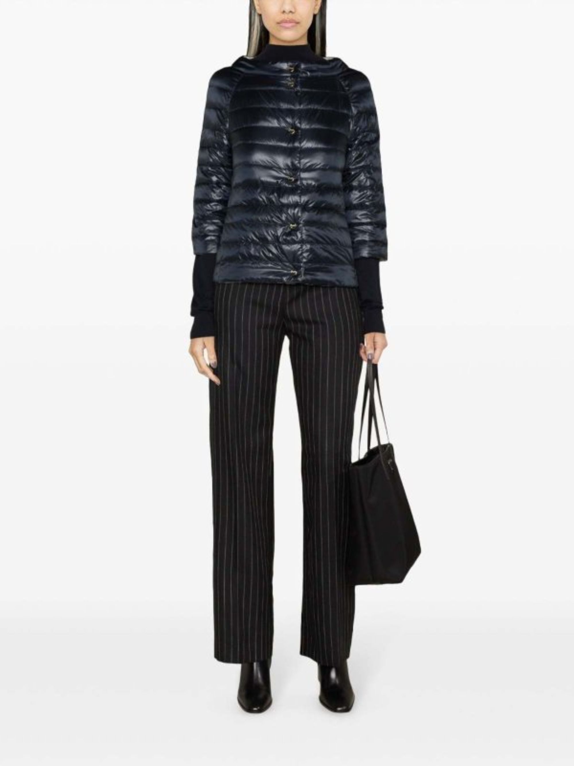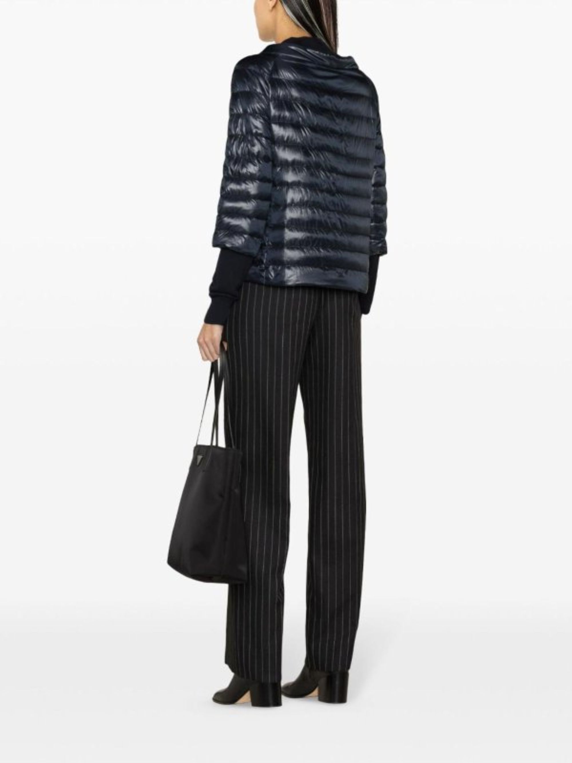 HERNO reversible jacket in blue nylon, featuring a round neck logo, buttons with engraved logo, front fastening with press studs, quarter-length sleeves, two side pockets and a straight hem.