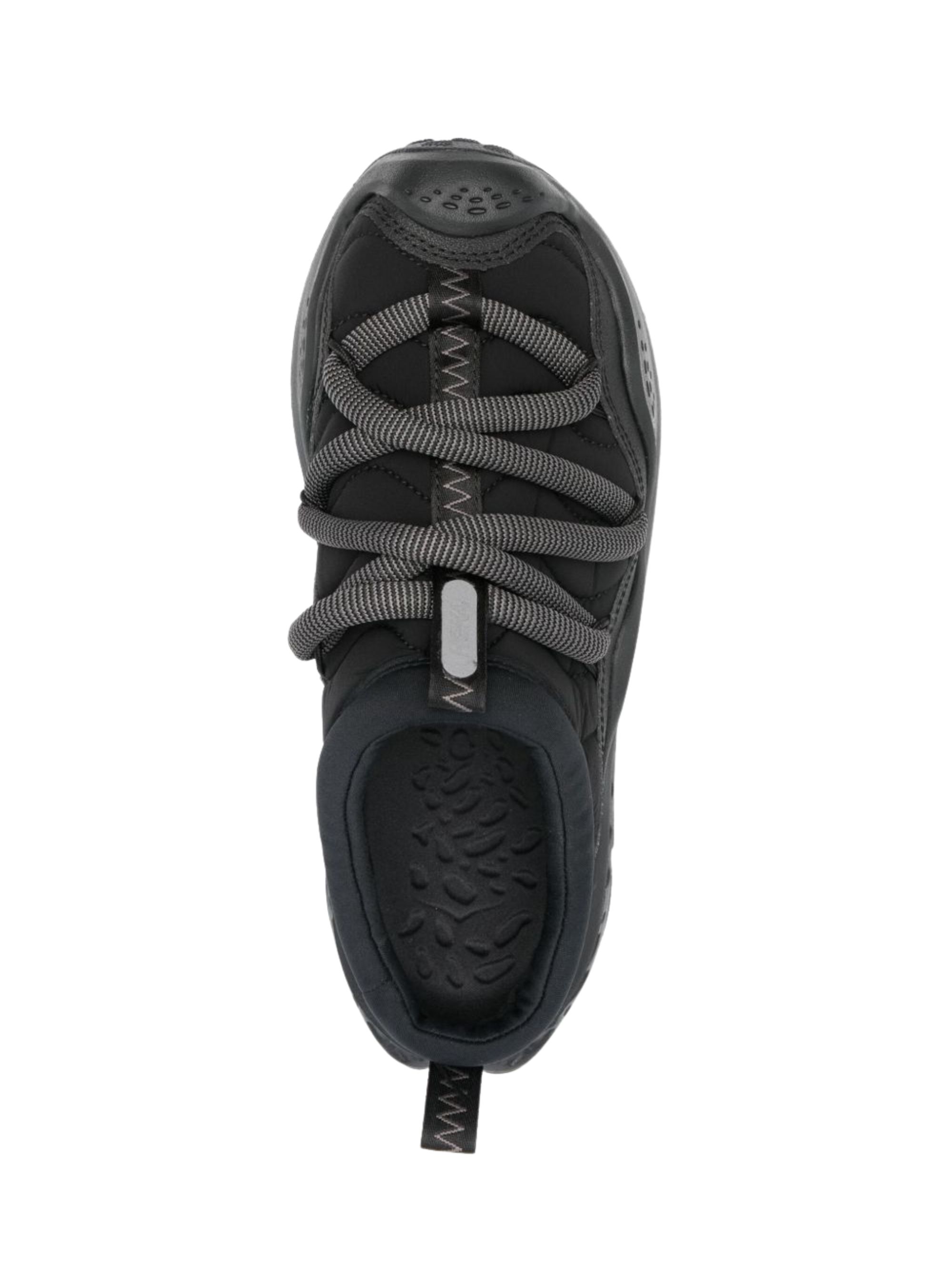 black padded design round toe rubber toecap logo pull-tab appliqué logo pull-tab at the heel padded ankle chunky rubber sole elasticated strap