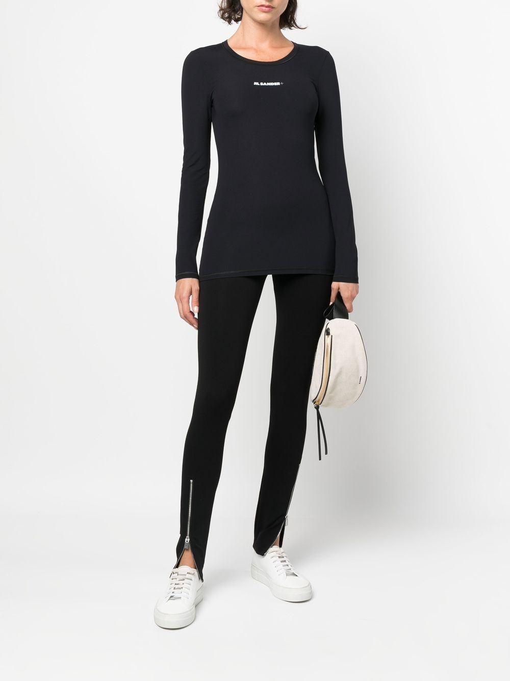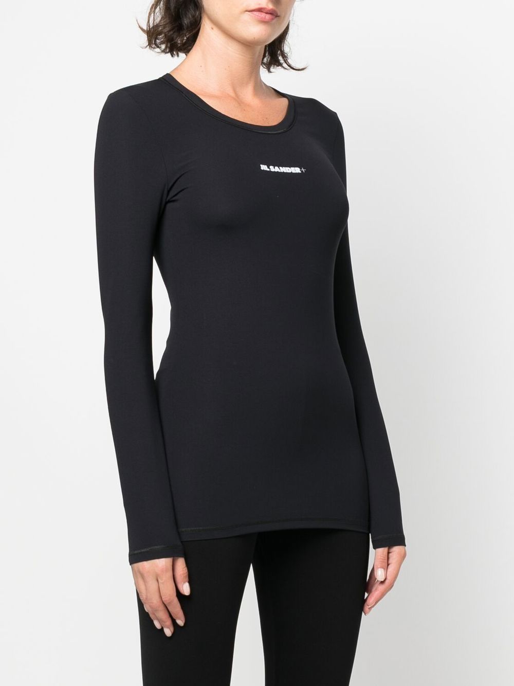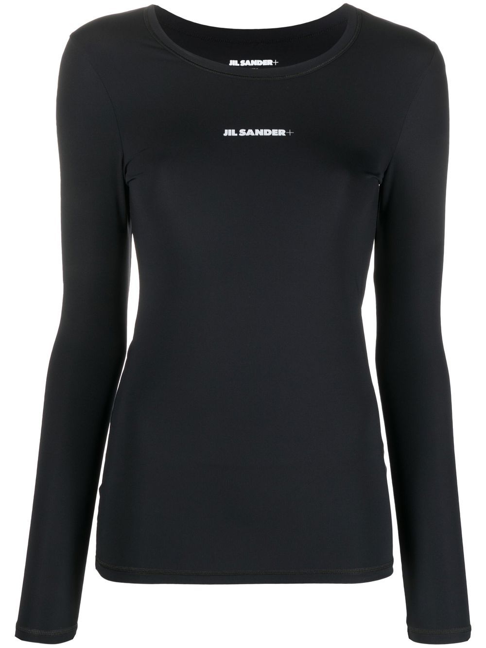 JIL SANDER black crew neck long sleeve shirt with logo print on the chest.