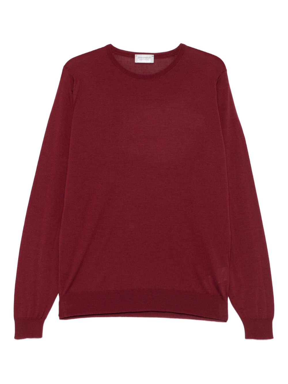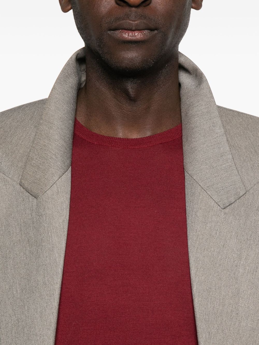 red merino wool round neck long sleeves ribbed cuffs and hem