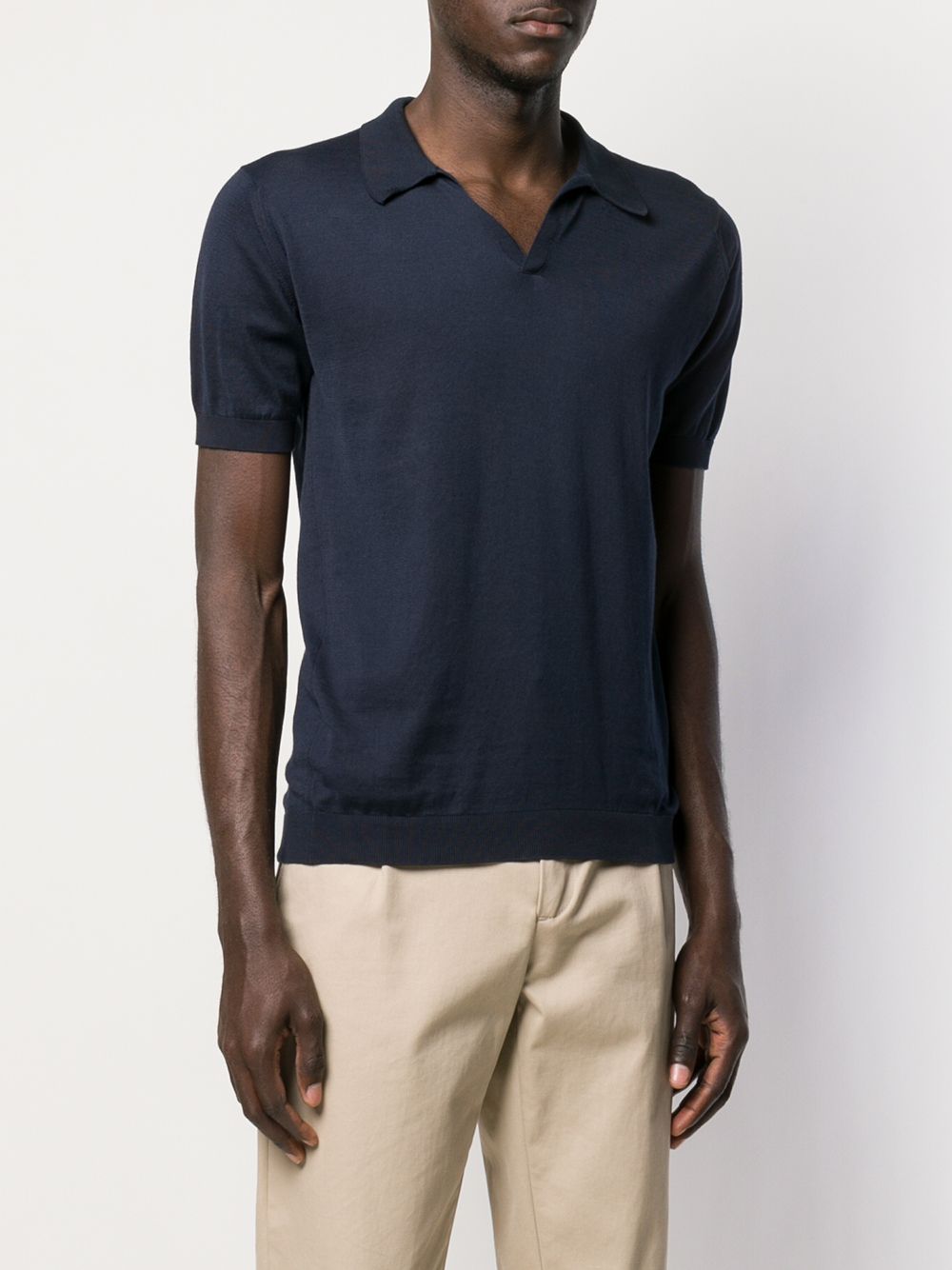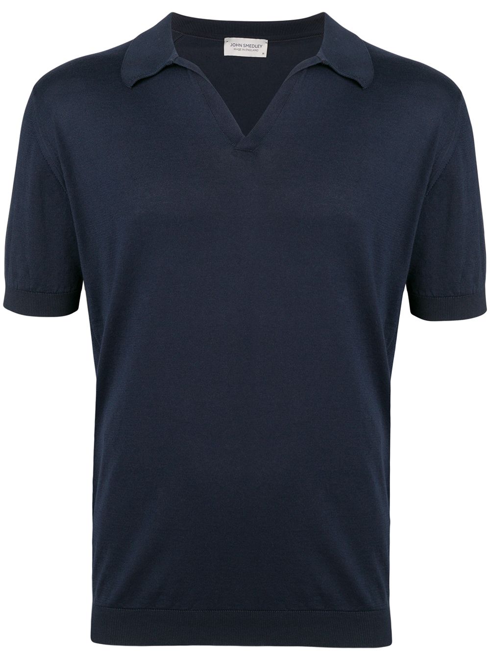 Noah polo shirt by JOHN SMEDLEY in blue cotton, featuring short sleeves, a classic collar, ribbed finishes and a V-neck.