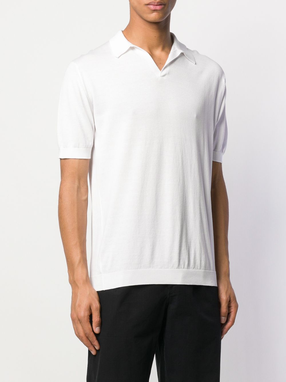 Noah polo shirt by JOHN SMEDLEY in white cotton, featuring short sleeves, a classic collar, ribbed finishes and a V-neck.