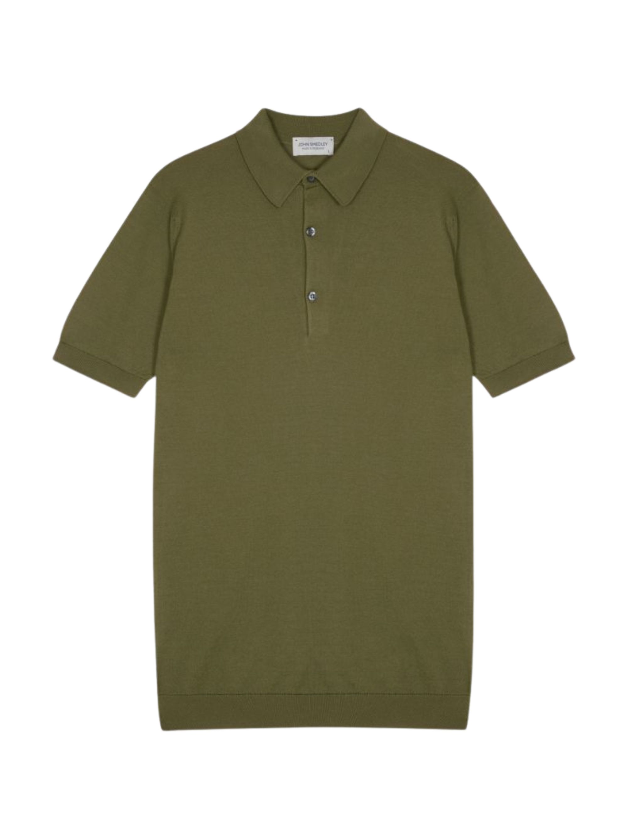 Adrian polo shirt by JOHN SMEDLEY in green cotton, featuring short sleeves, a classic collar and button fastening.