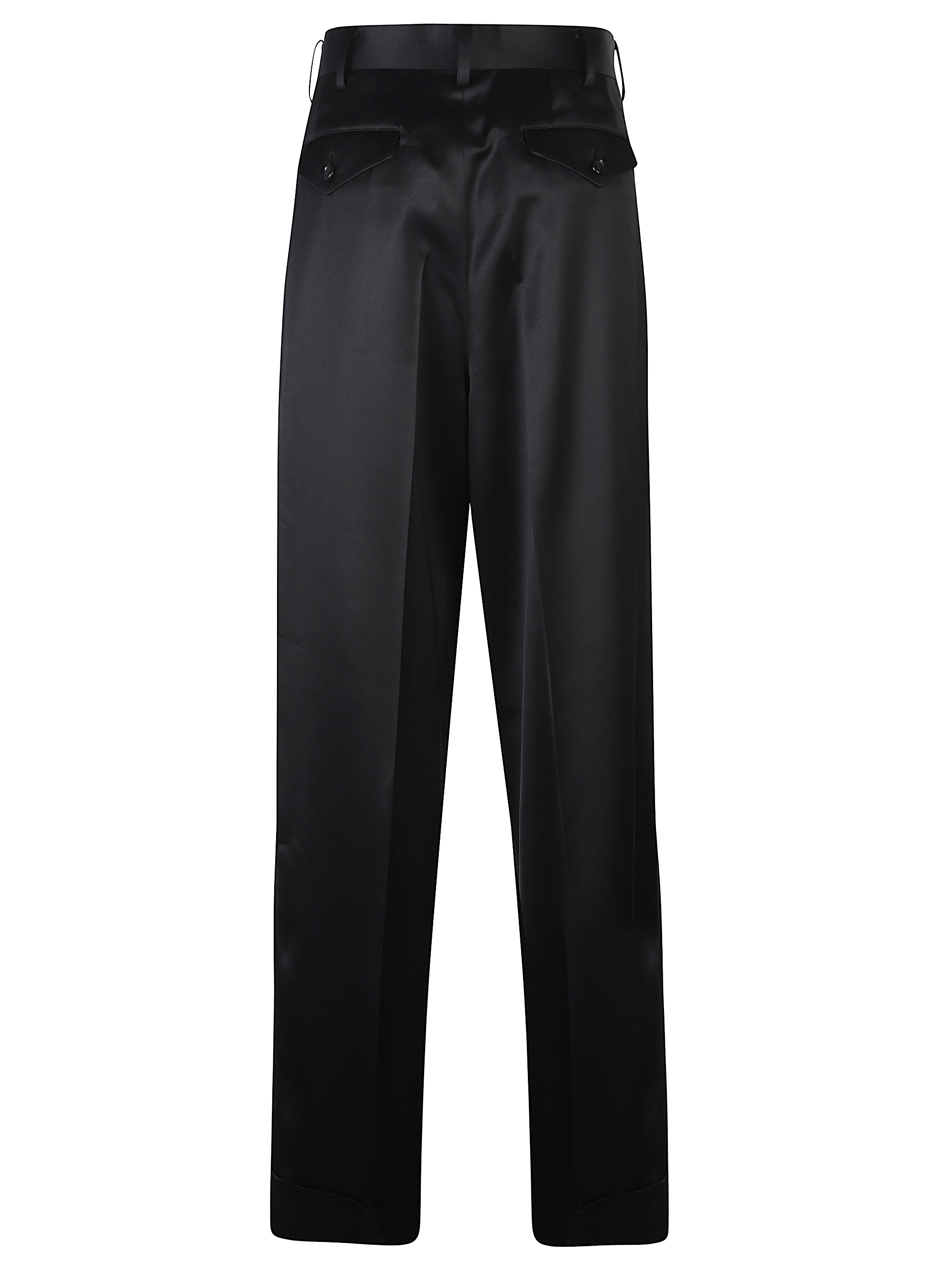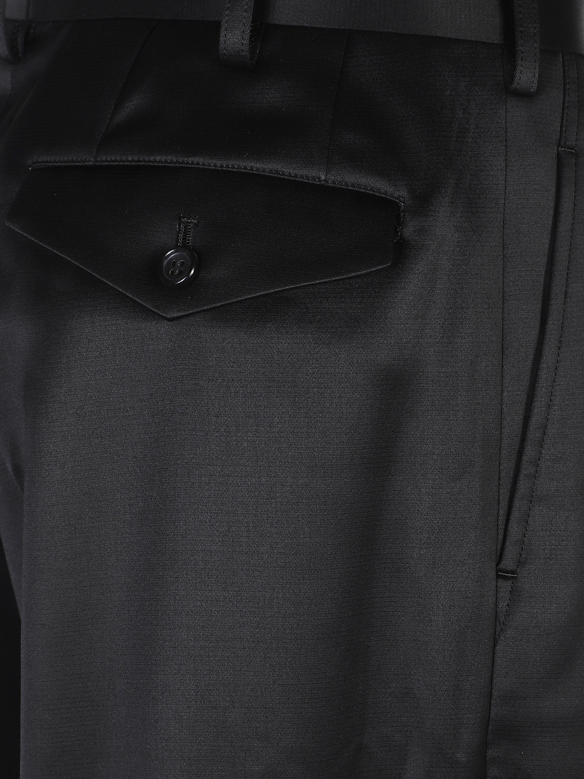 JUNYA WATANABE black wool and viscose trousers featuring belt loops, zip and hook fastening, two welt pockets and two flap and button pockets on the back.