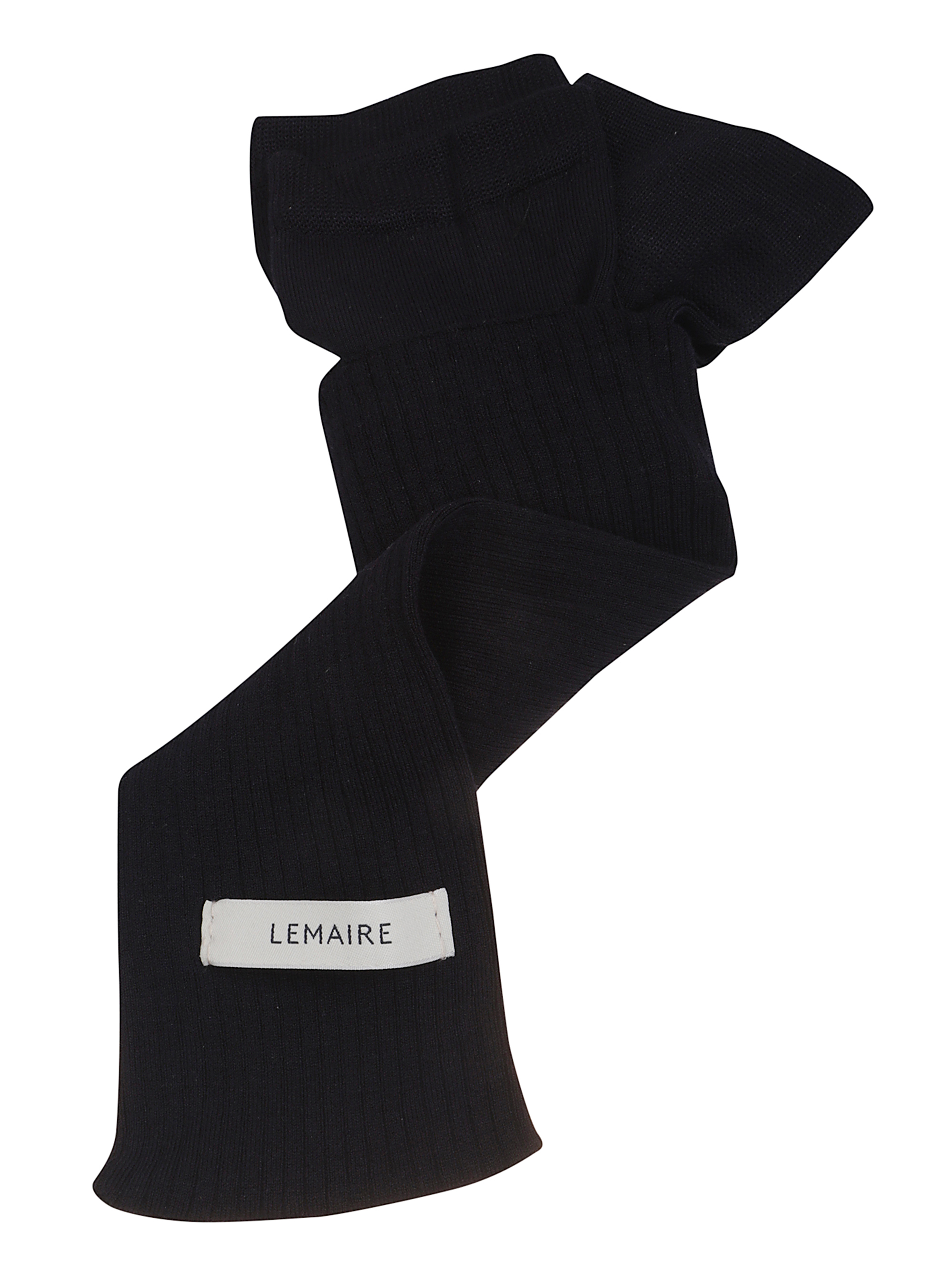 Cut-Out socks by LEMAIRE in blue silk and viscose, featuring a cut-out heel and logo.