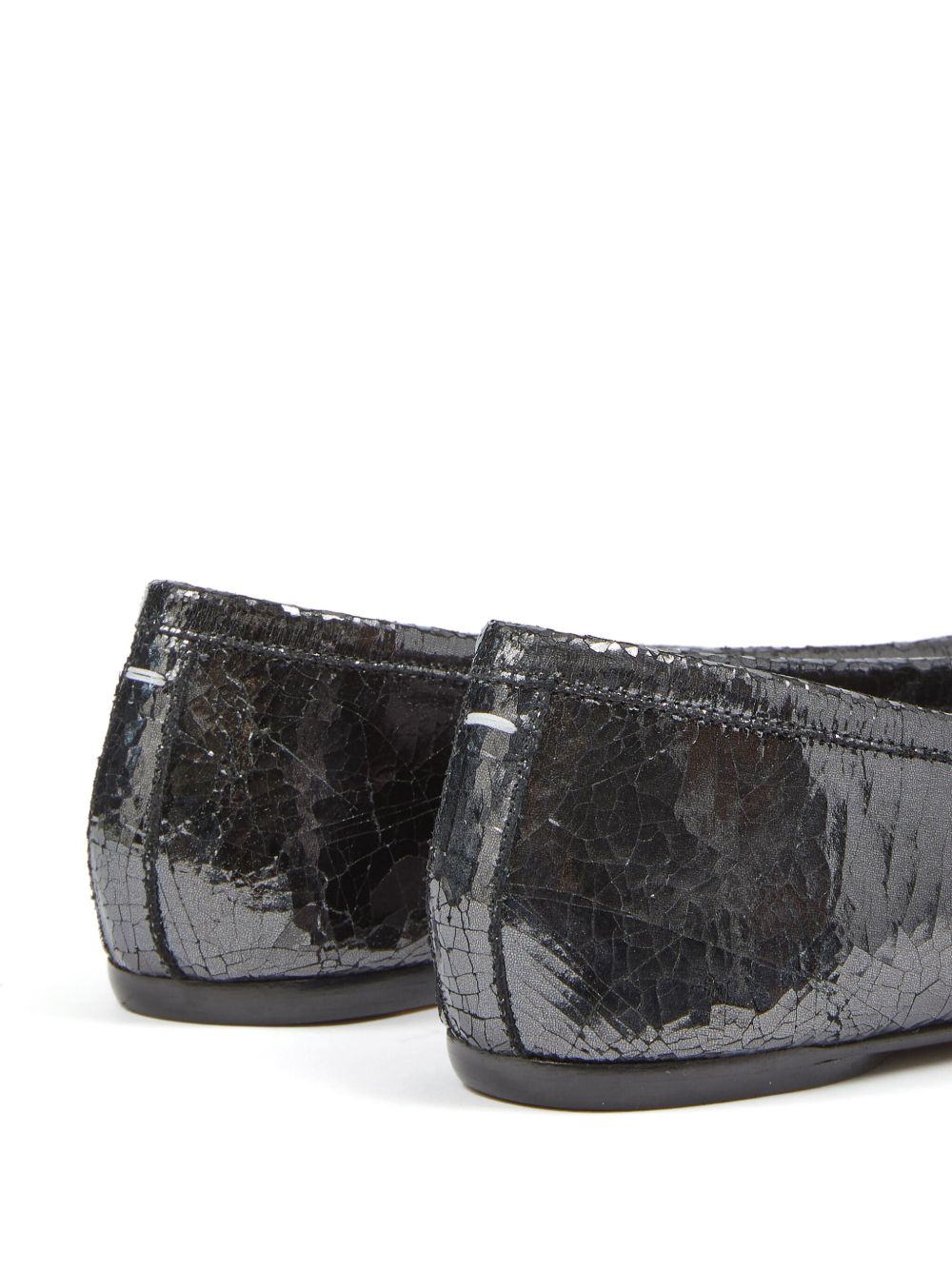 MAISON MARGIELA Tabi ballerina flat in metallic grey leather with Tabi toe, contrast trim, flat leather sole, slip-on design and bow detail.