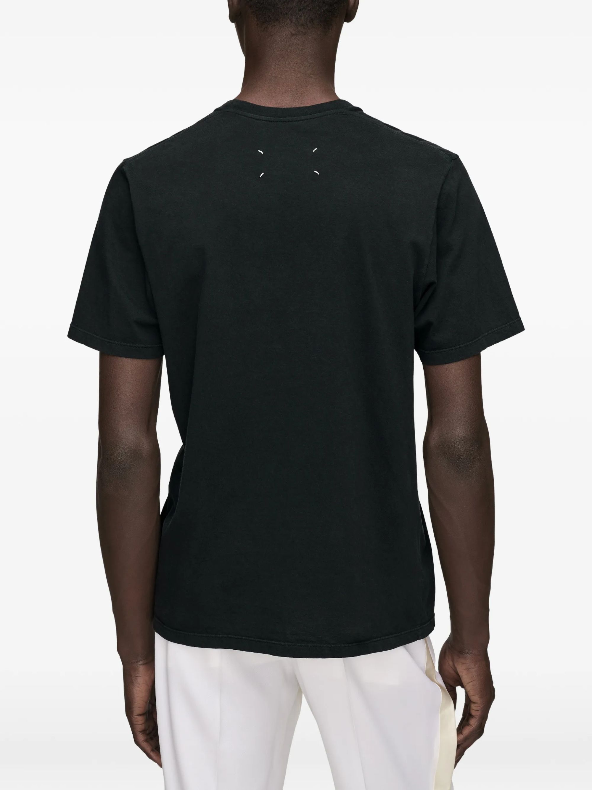 Taped T-shirt by MAISON MARGIELA in black cotton, featuring white stitching on the back, short sleeves, transparent tape detail on the chest pocket and crew neck.