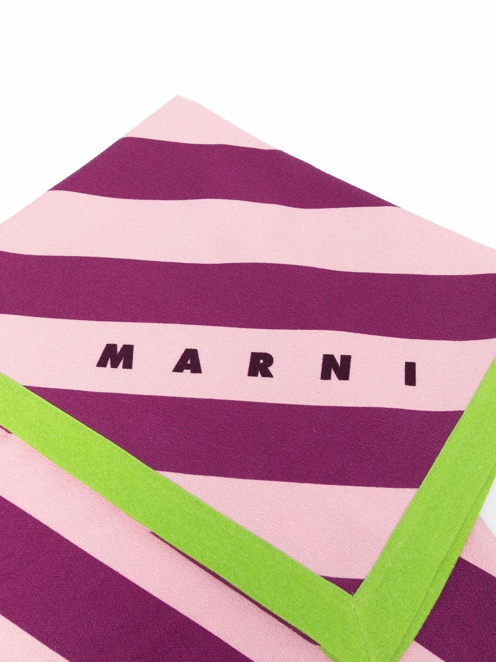 MARNI beach towel featuring a striped design in shades of pink and logo lettering.