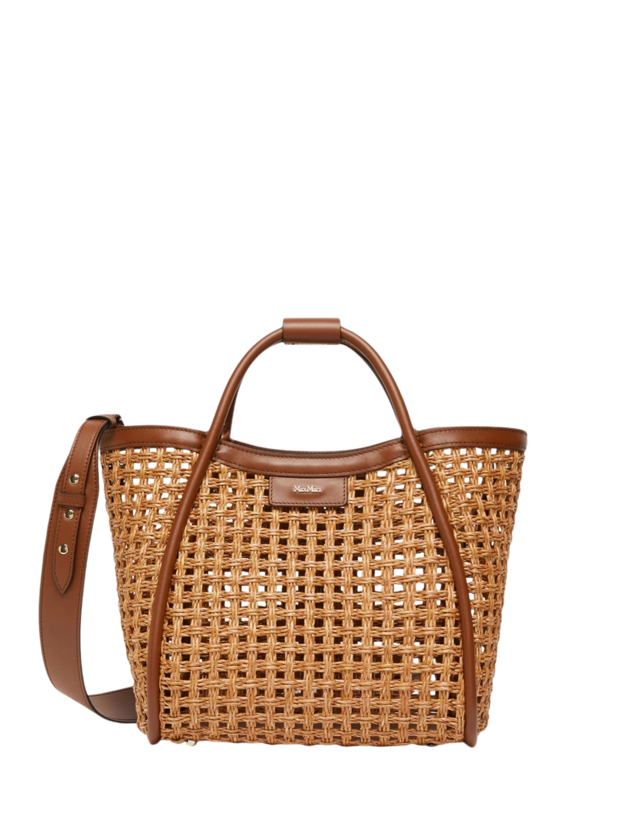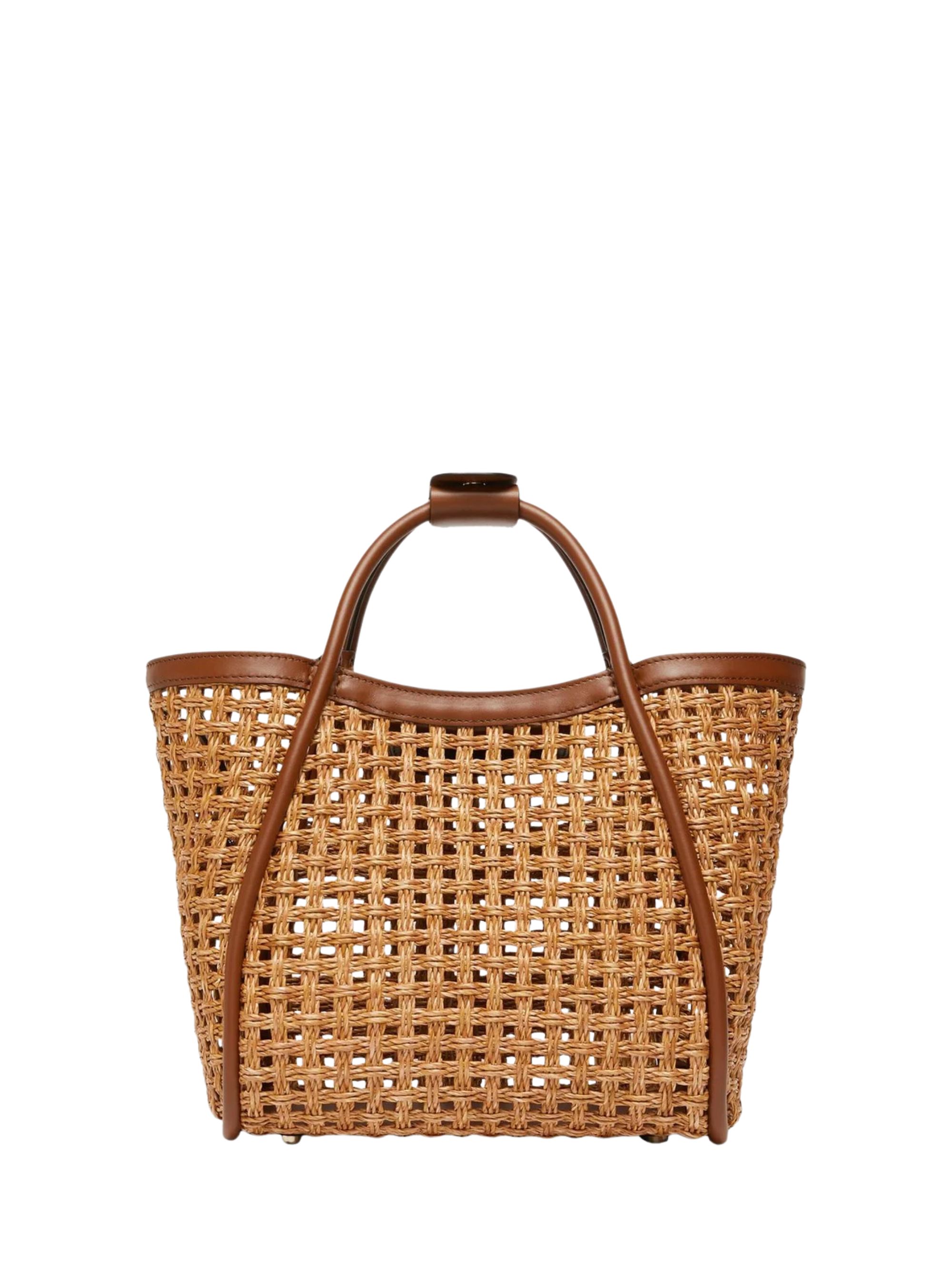 Marine Cesto handbag in straw, leather handles, removable shoulder strap, logo.