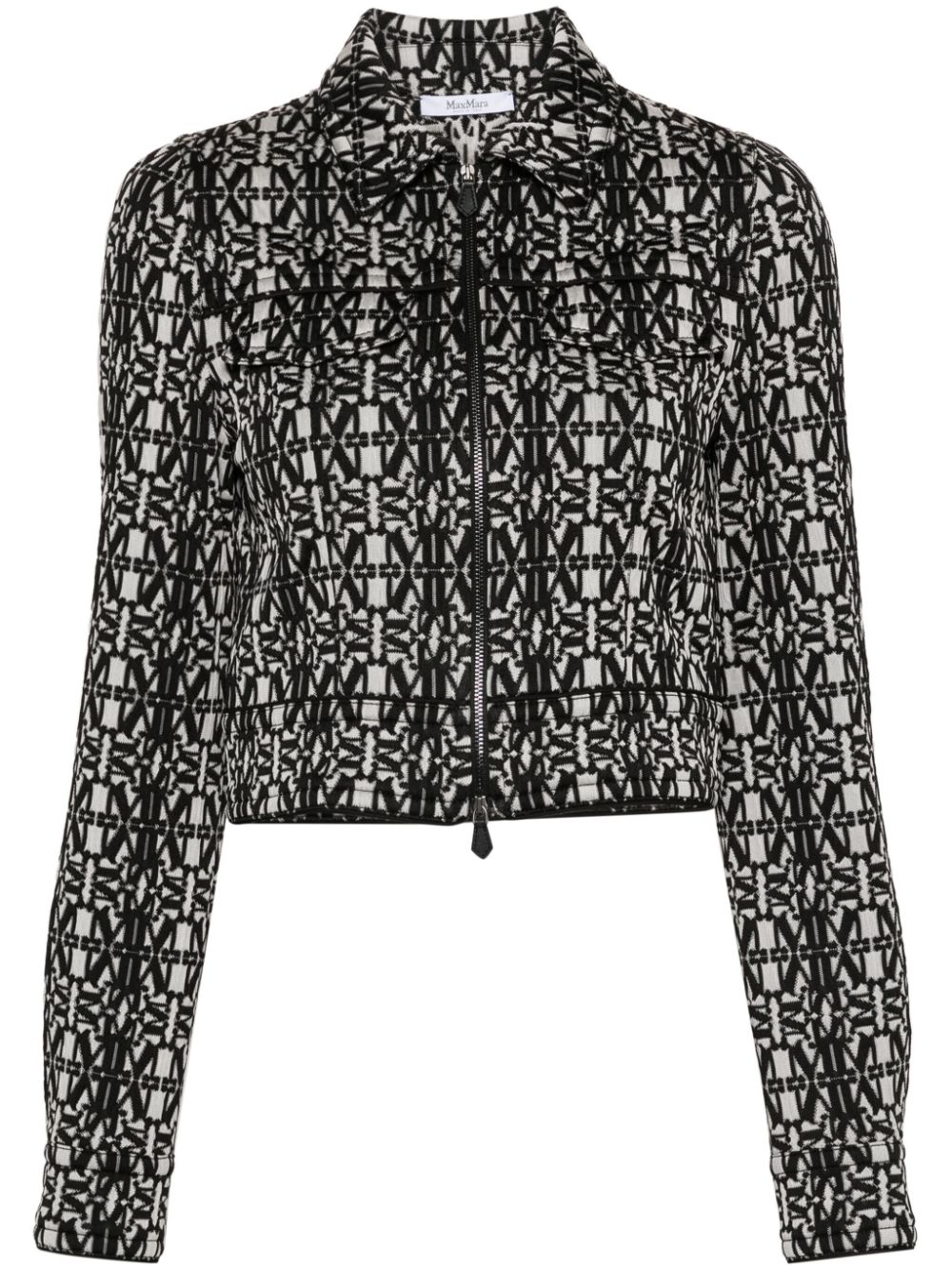 Jacket by MAX MARA characterized by an allover geometric pattern, cropped design, long sleeves, shirt collar and zip closure.