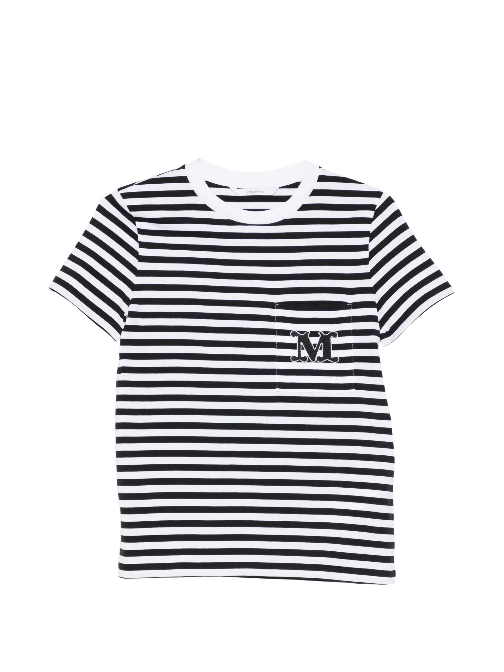 Moboli T-shirt by MAX MARA in black and white with striped pattern, in cotton, crew neck and logo.
