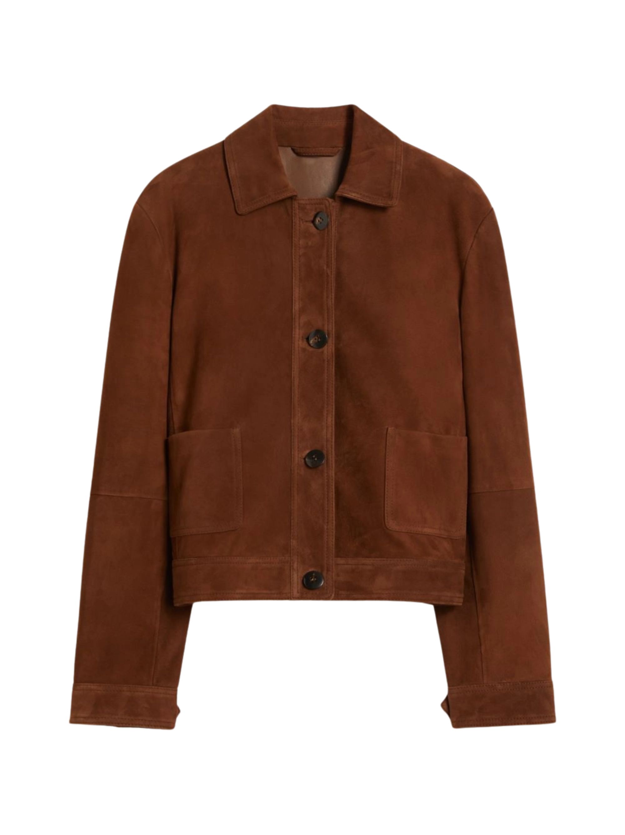 Baia brown suede jacket, collar, applied pockets, button closure.