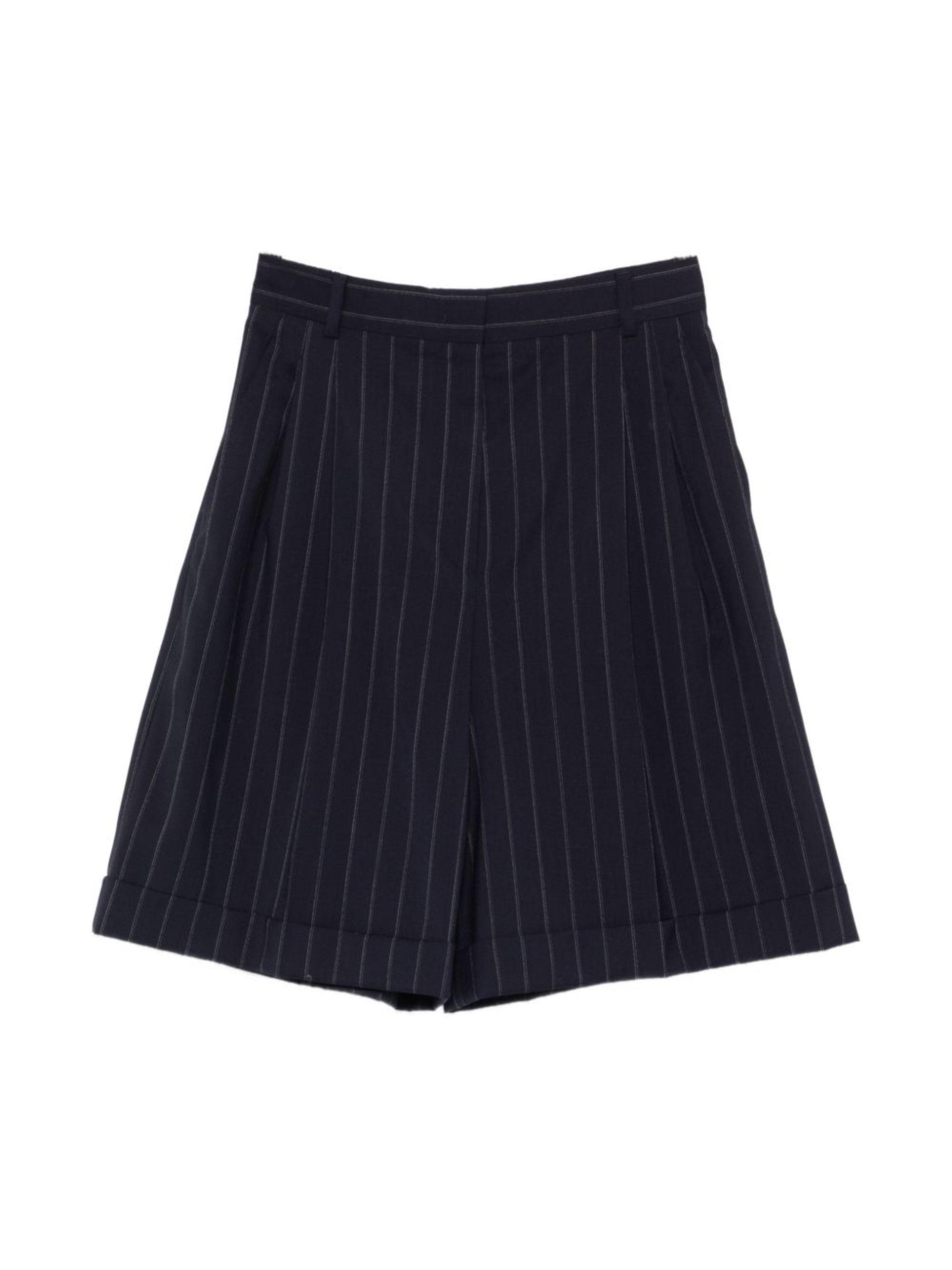 Ere blue wool pants, straight leg, central crease, double front pleats, side pockets, belt loops.