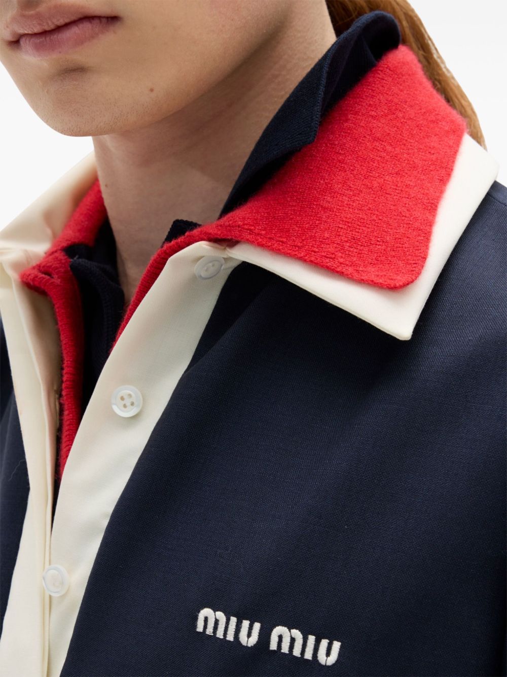 MIU MIU blue kid mohair short dress with classic collar, short sleeves, pleated skirt, lined, embroidered logo and front button fastening.