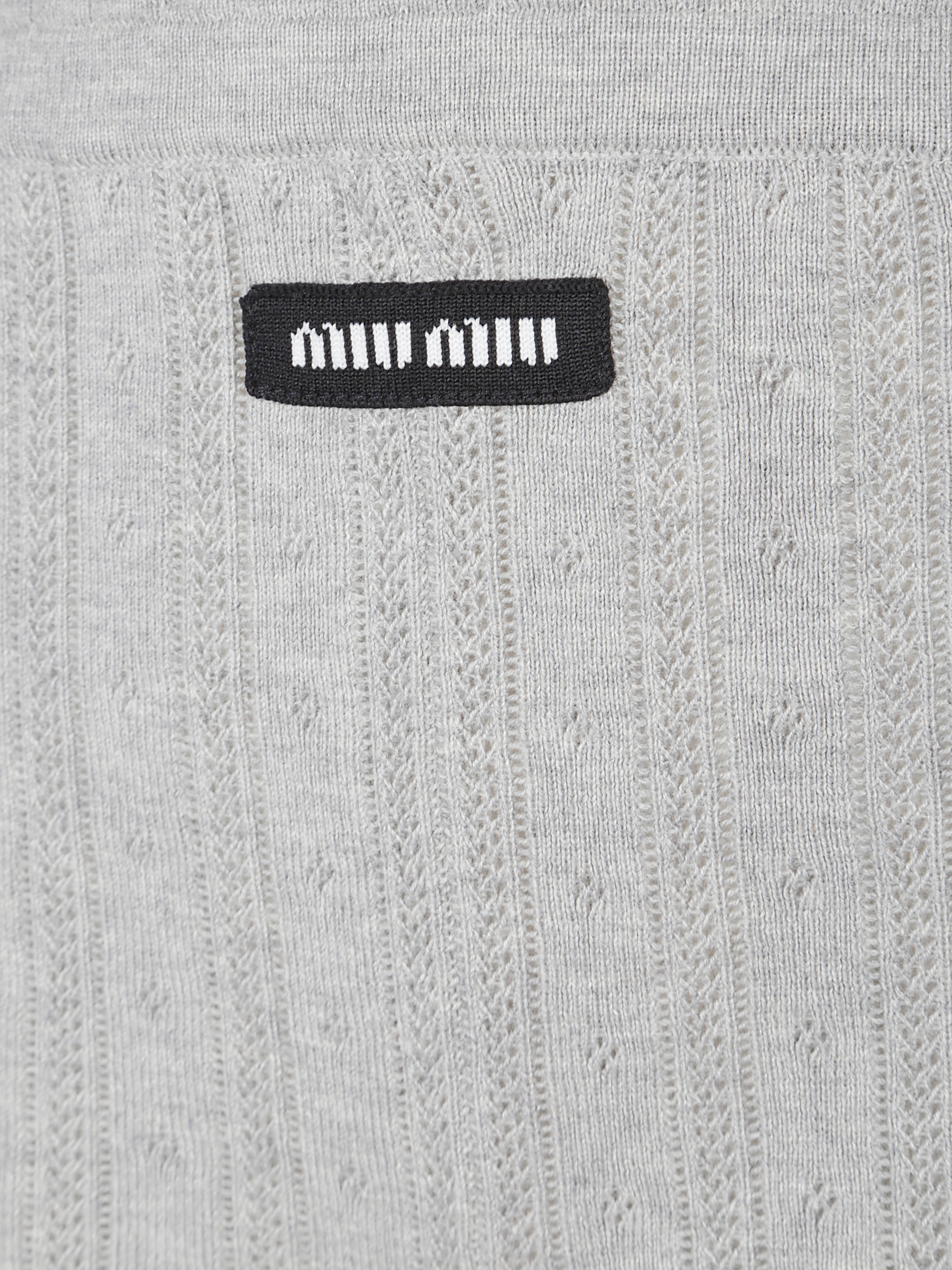 MIU MIU gray ribbed knit shorts with an elastic waistband and logo.