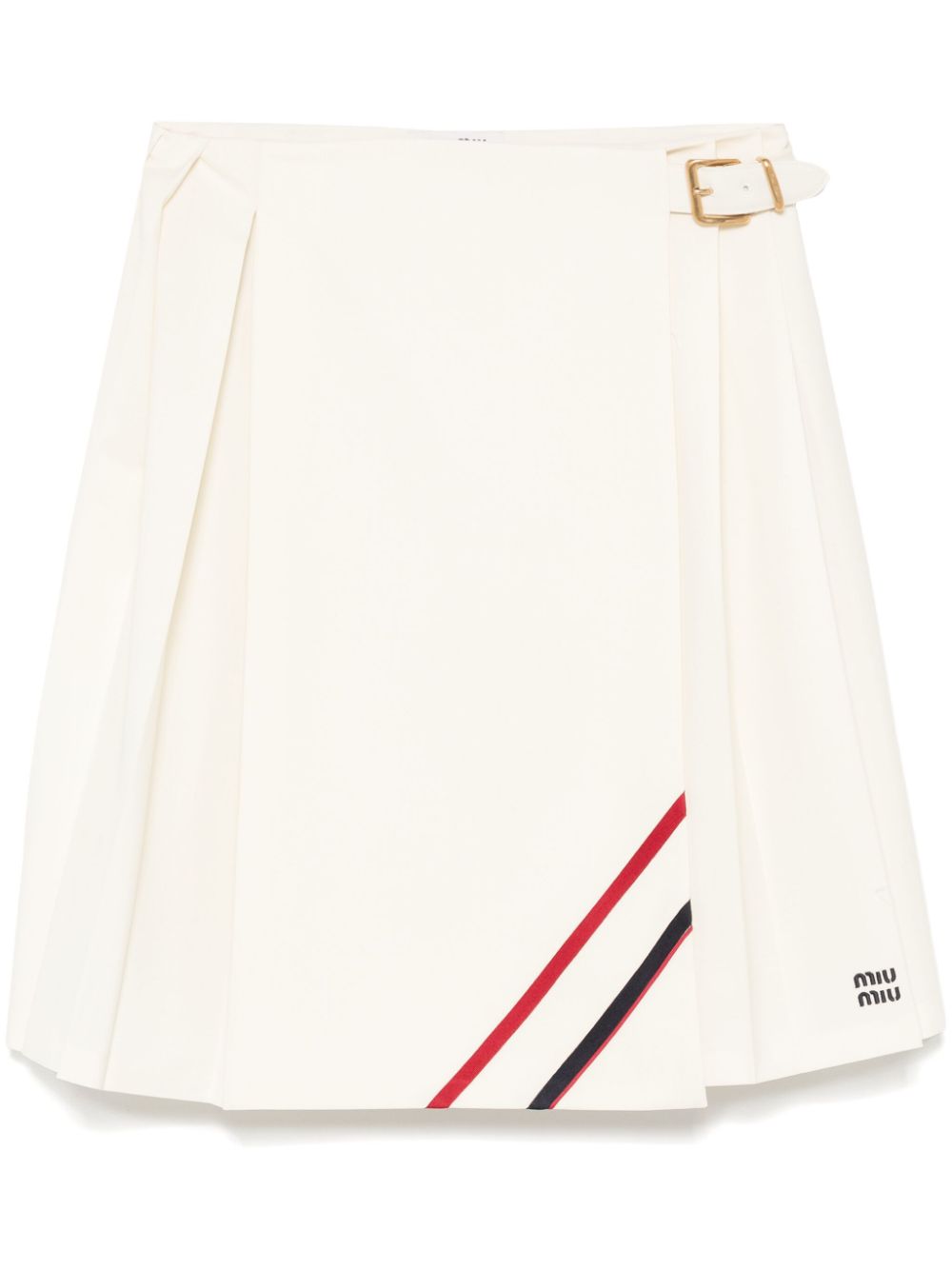 MIU MIU white mohair canvas skirt, flared fit, unlined, embroidered logo and side zip with hook.