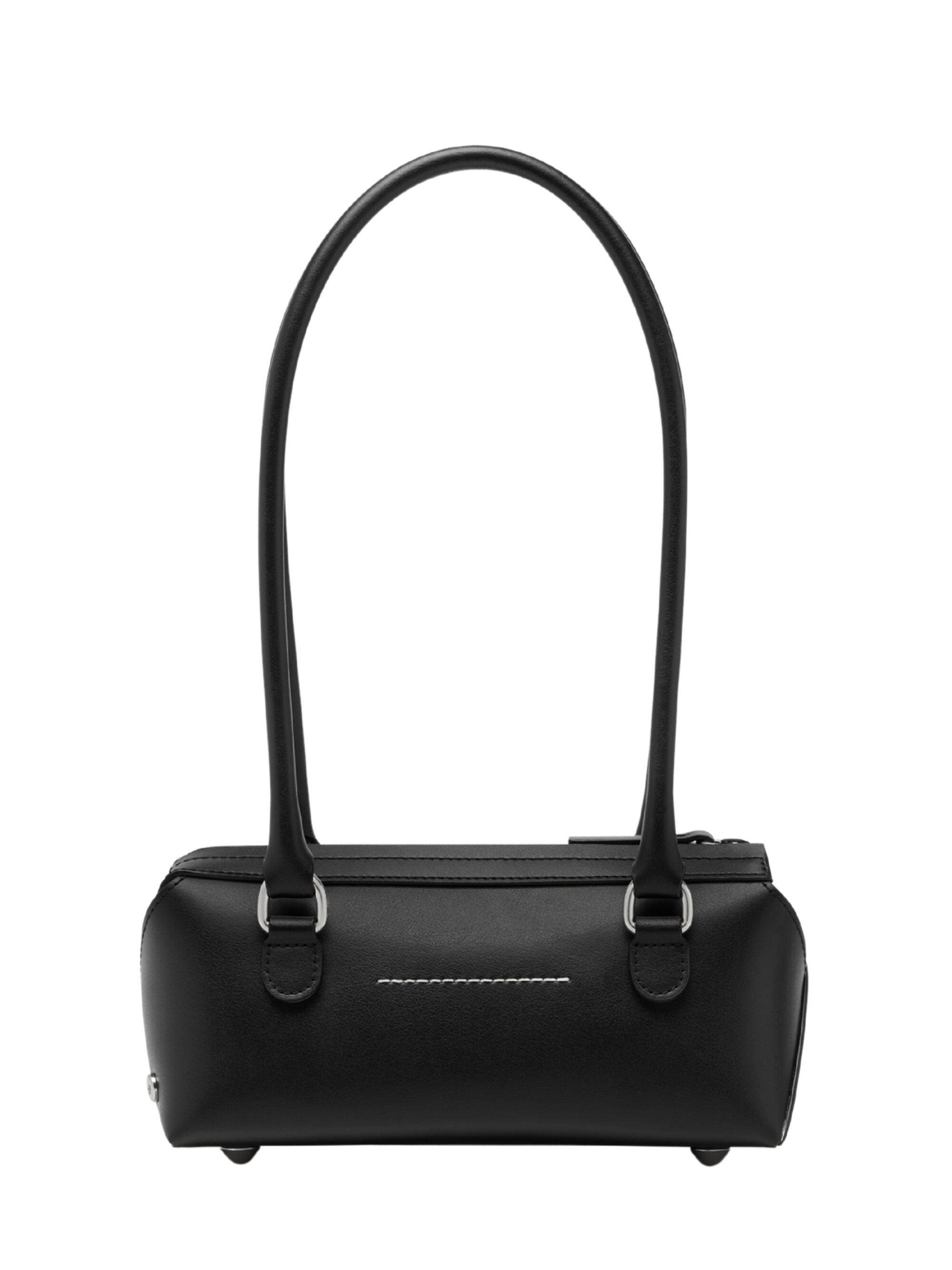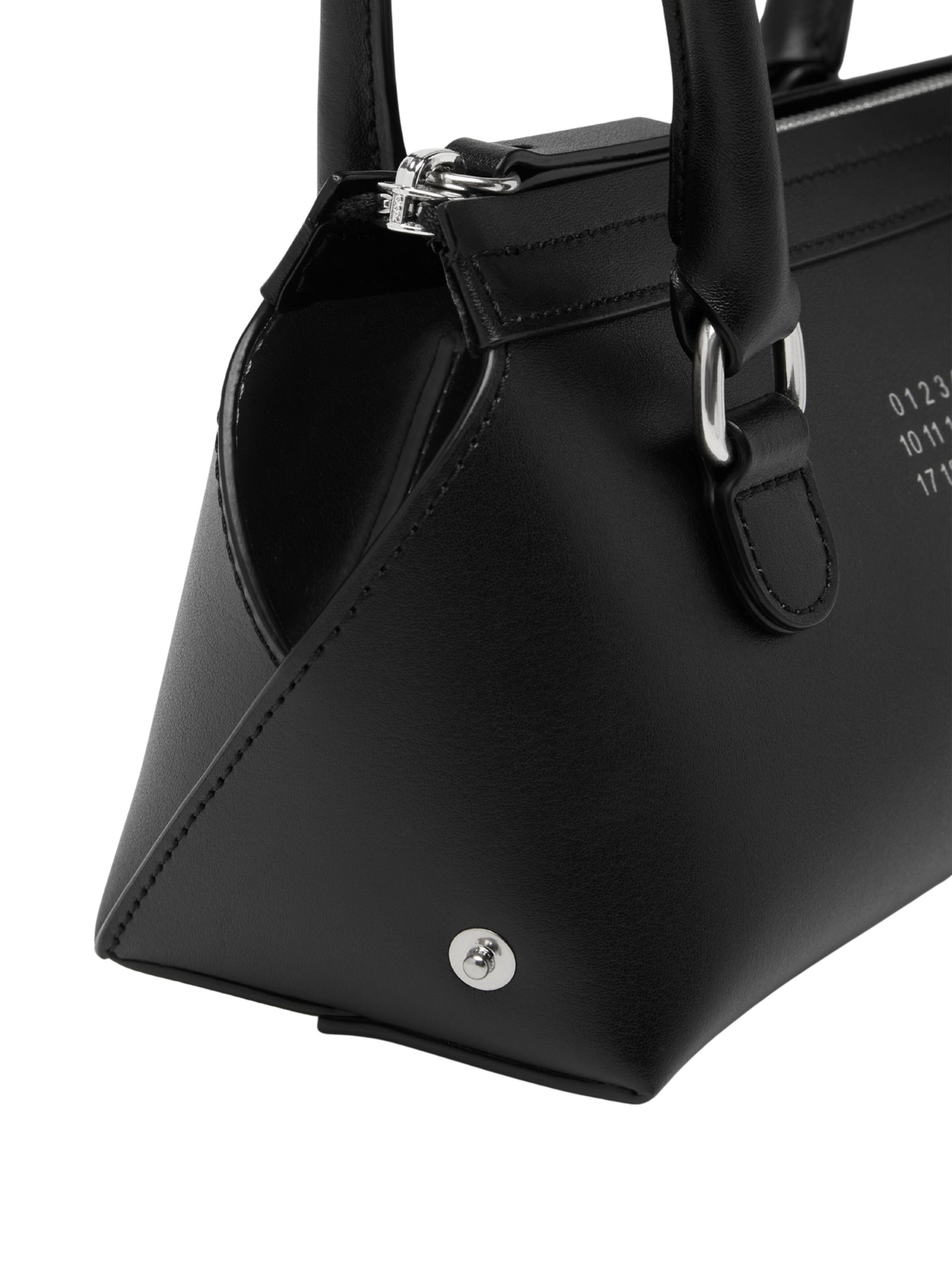 New Bauletto J mini bag by MM6 in black leather, handles, silver hardware, metal feet, number print and zip closure.