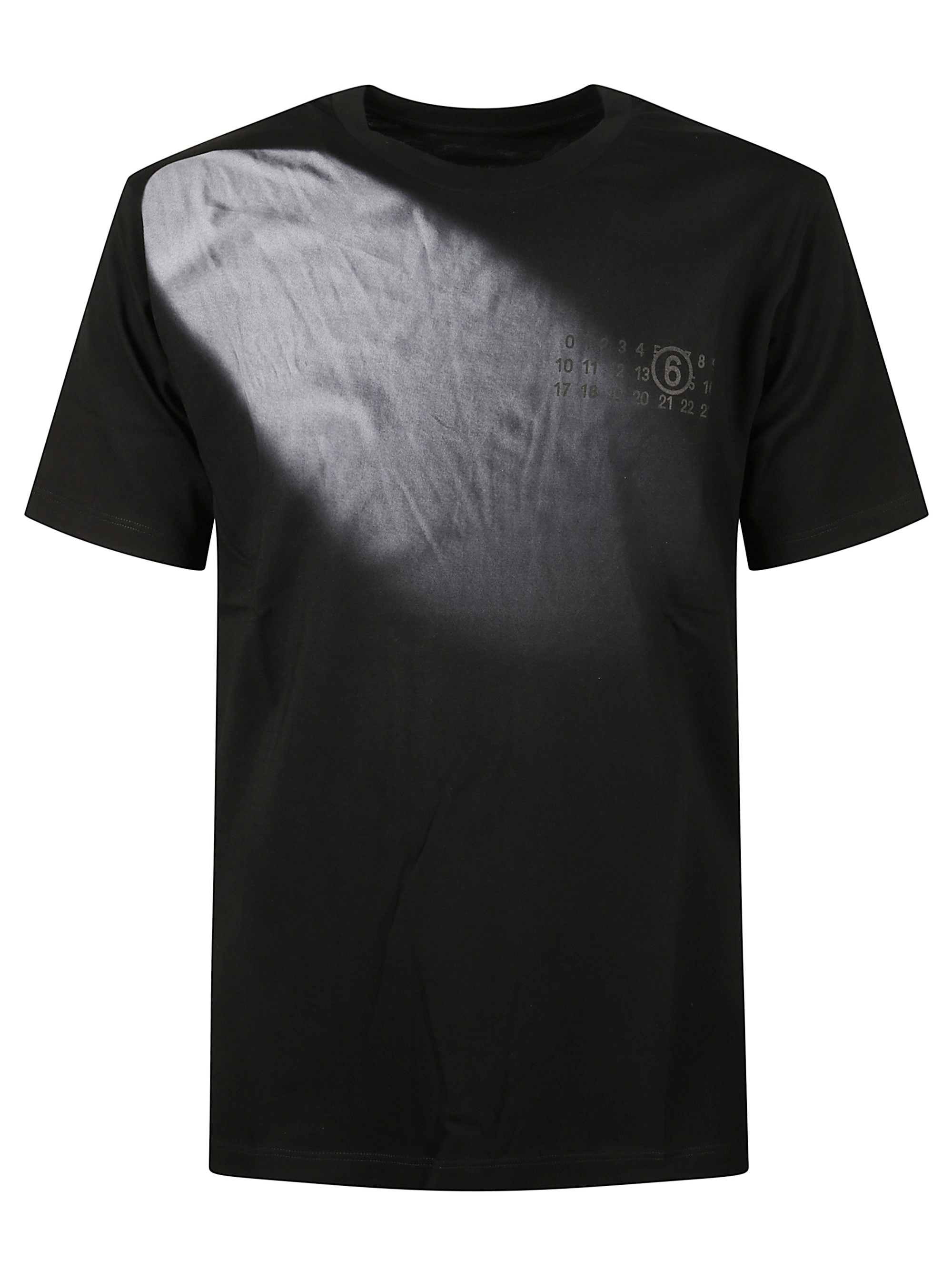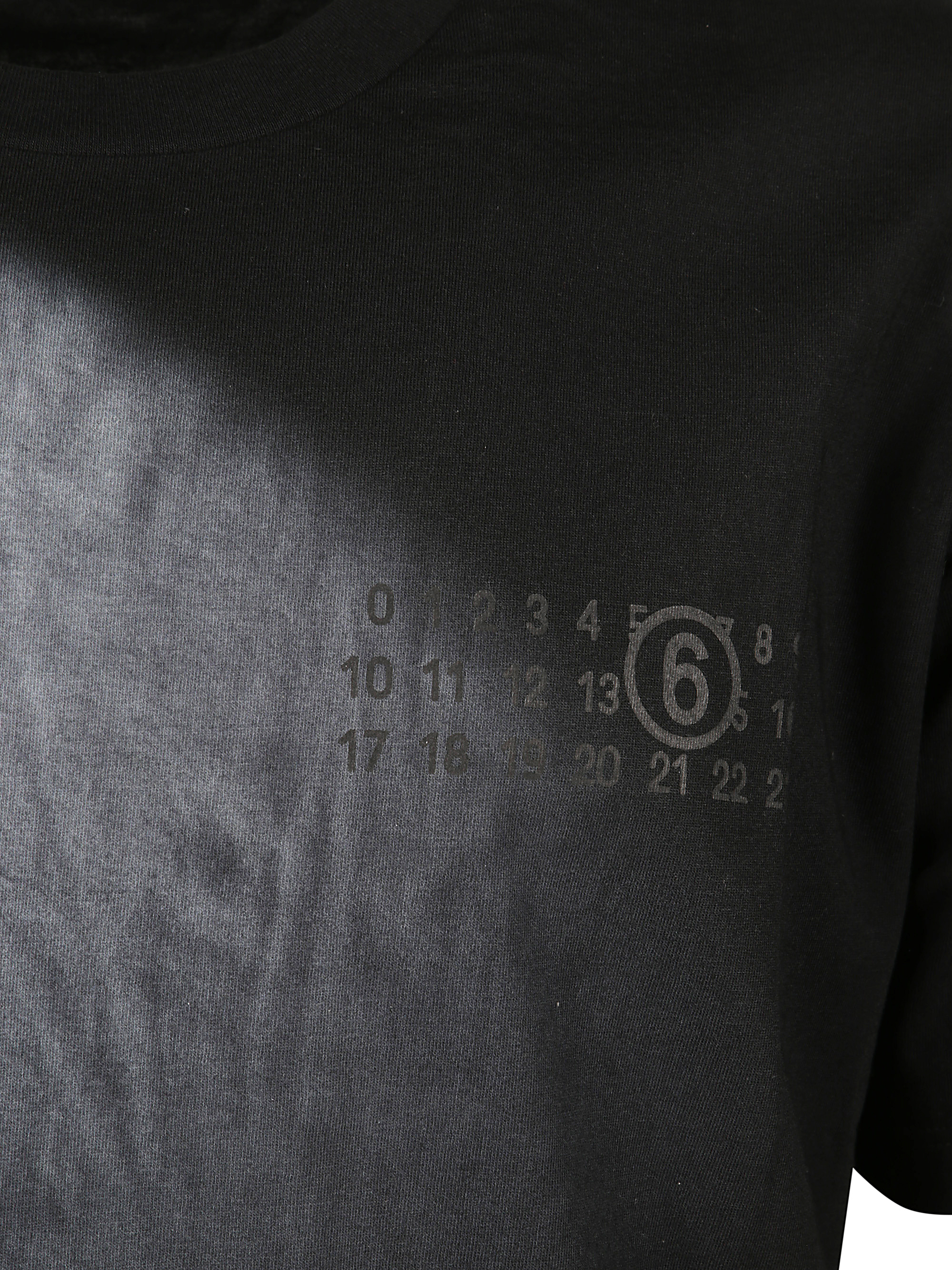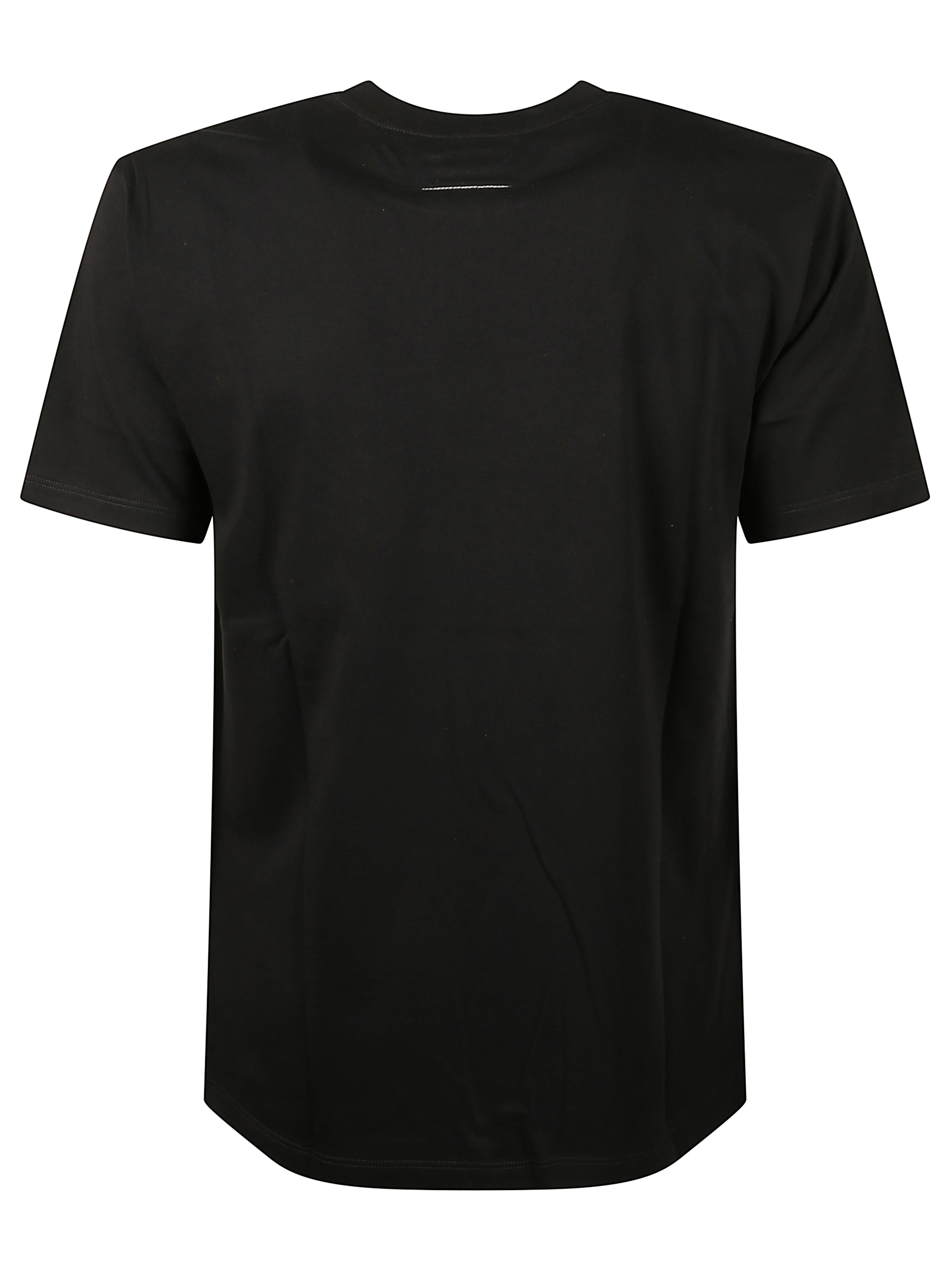 Black MM6 Reflector T-shirt in cotton, featuring a reflector-effect print, short sleeves and white MM6 stitching on the back.