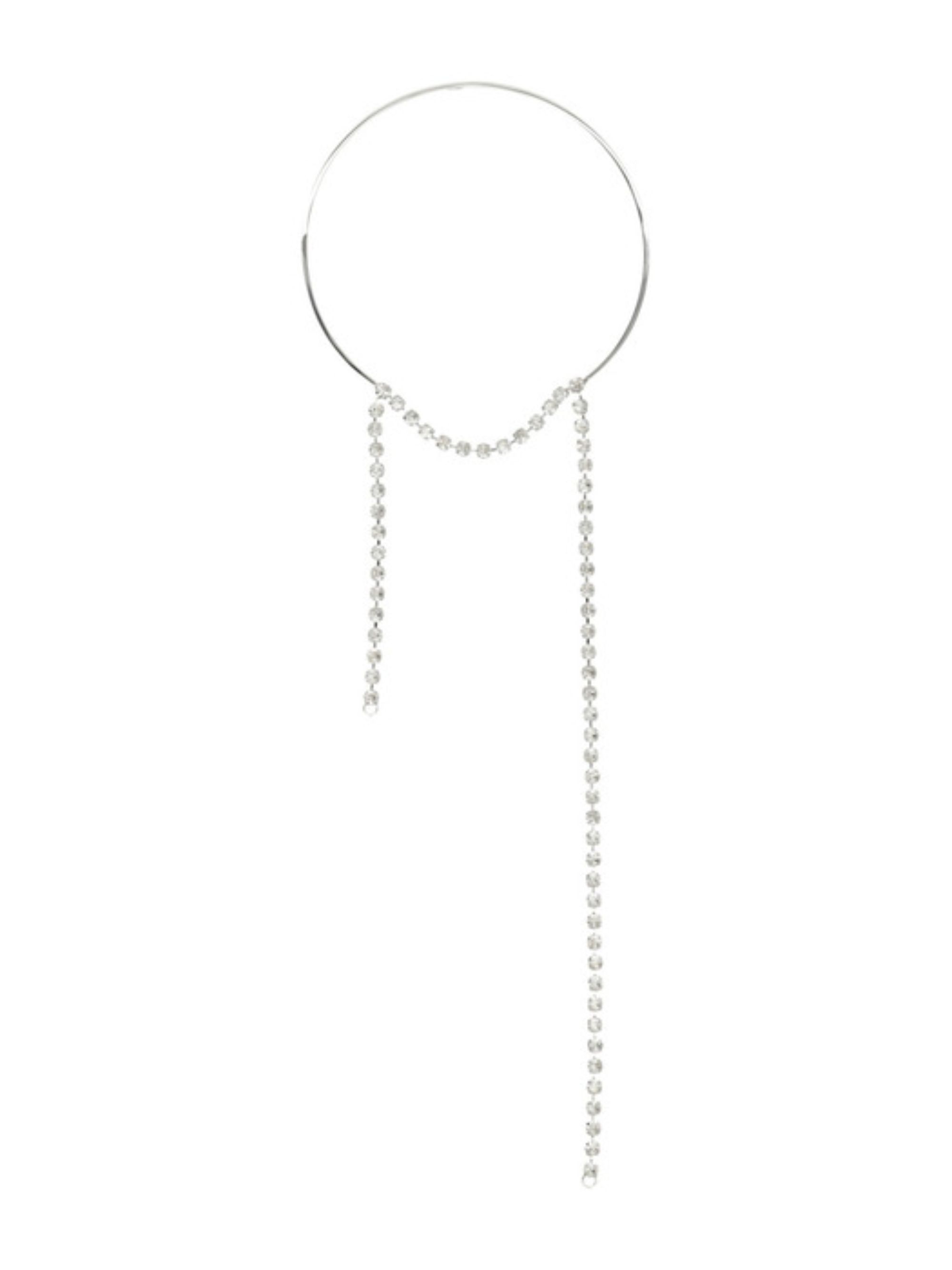 MM6 silver brass rhinestone necklace with rhinestone pendant and logo engraved inside.