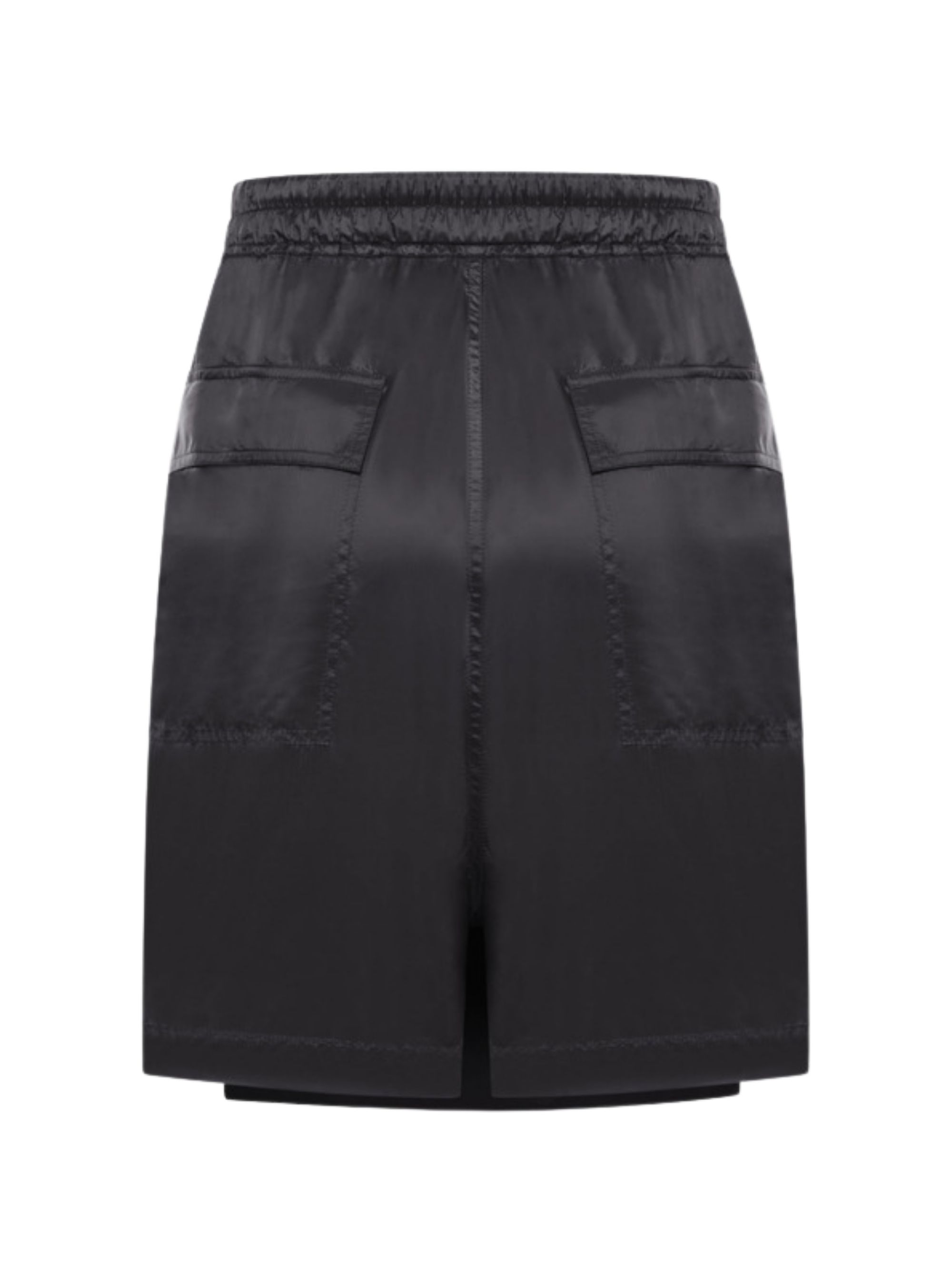 MONCLER x RICK OWENS black Skort Kiltshorts in lightweight technical nylon, featuring an elasticated waist with drawstring, back patch pockets and tone-on-tone stitching.