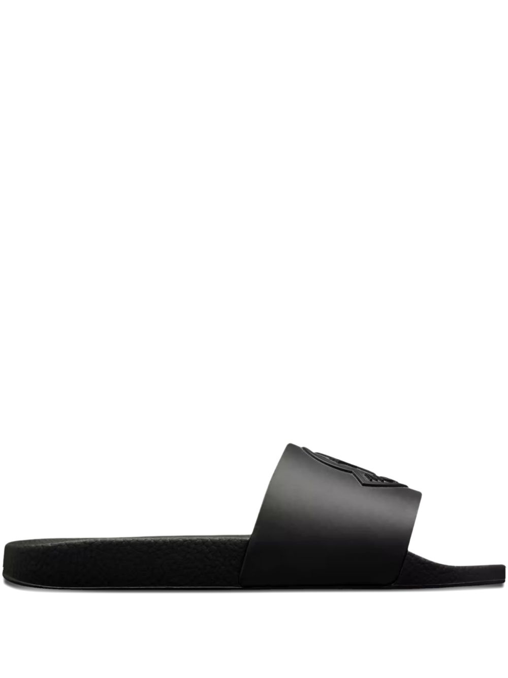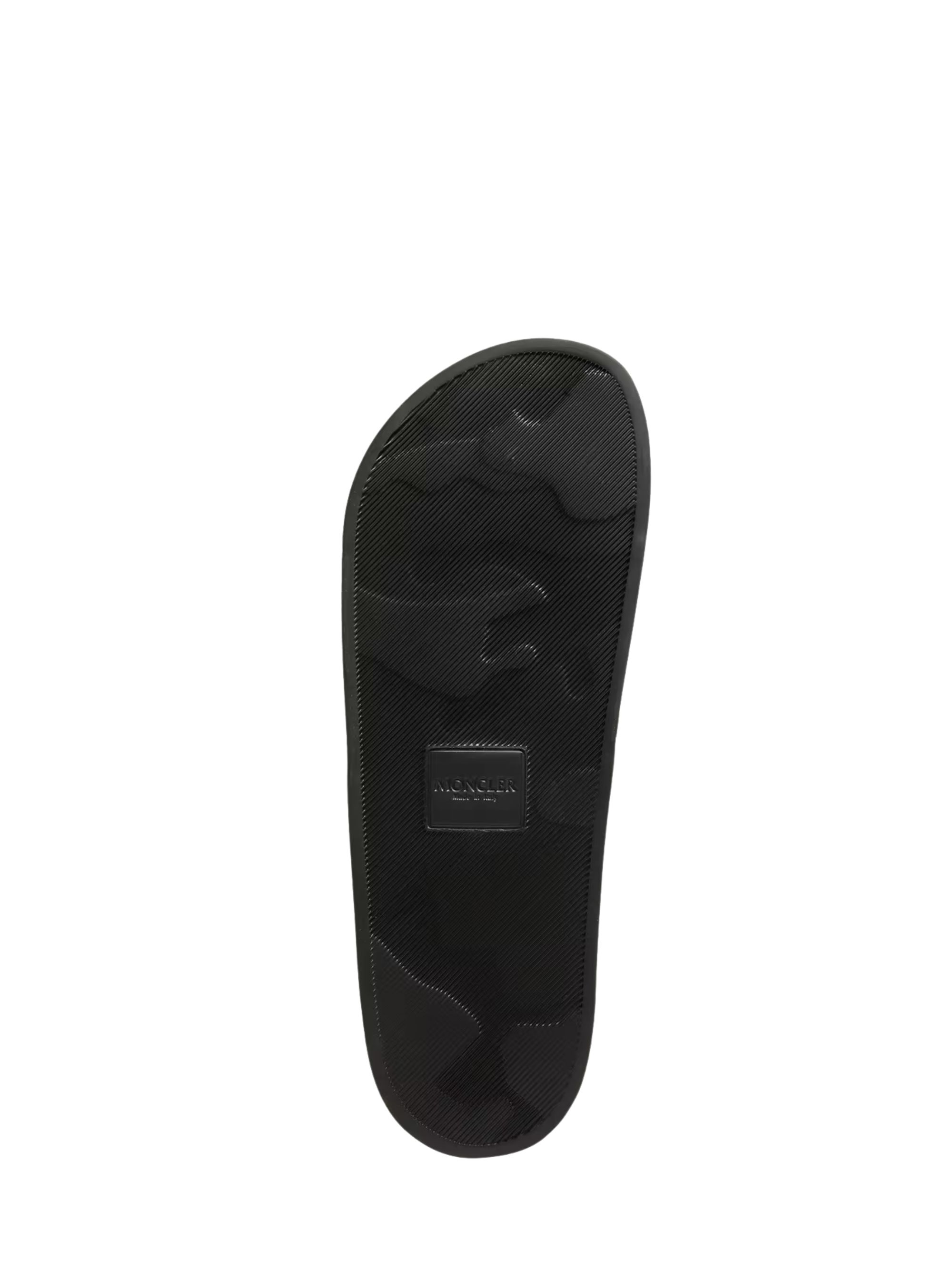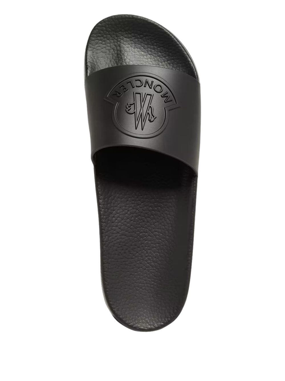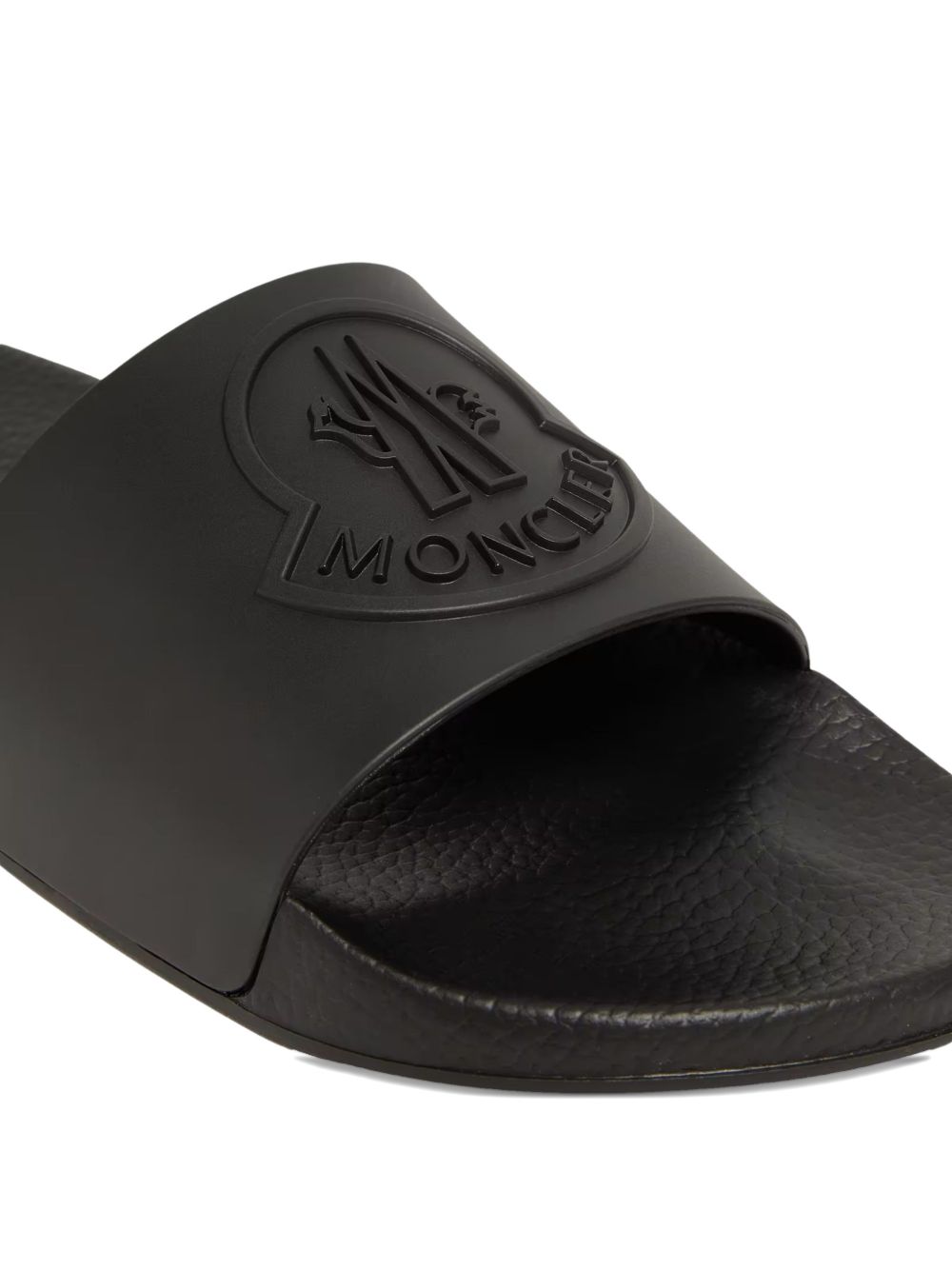 MONCLER Basile slide in black rubber, featuring a rubber upper with Moncler logo and EVA sole.