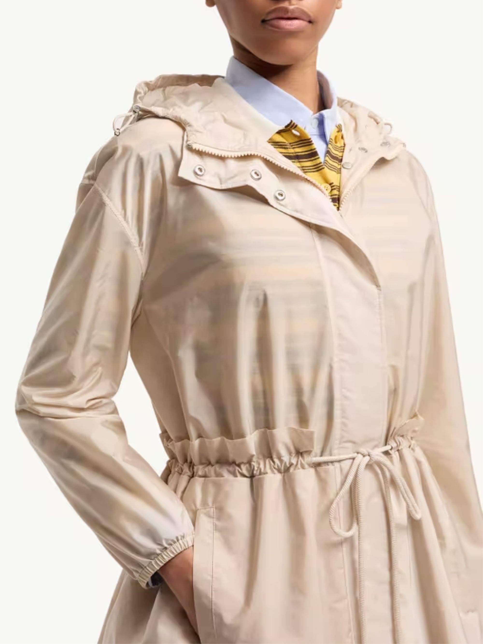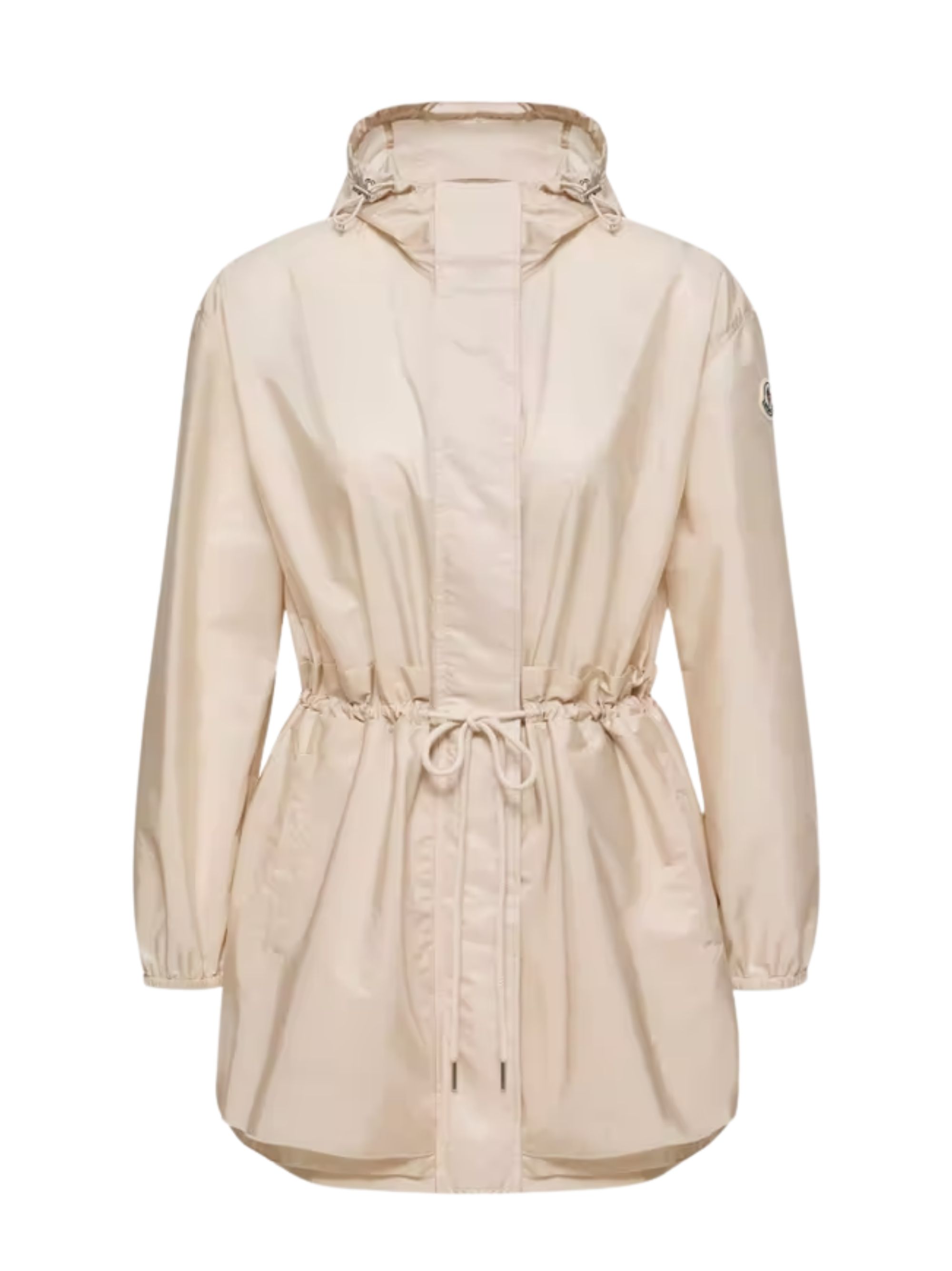 Beige waterproof Weteau jacket by MONCLER with hood, drawstring waist and button and zip fastening.