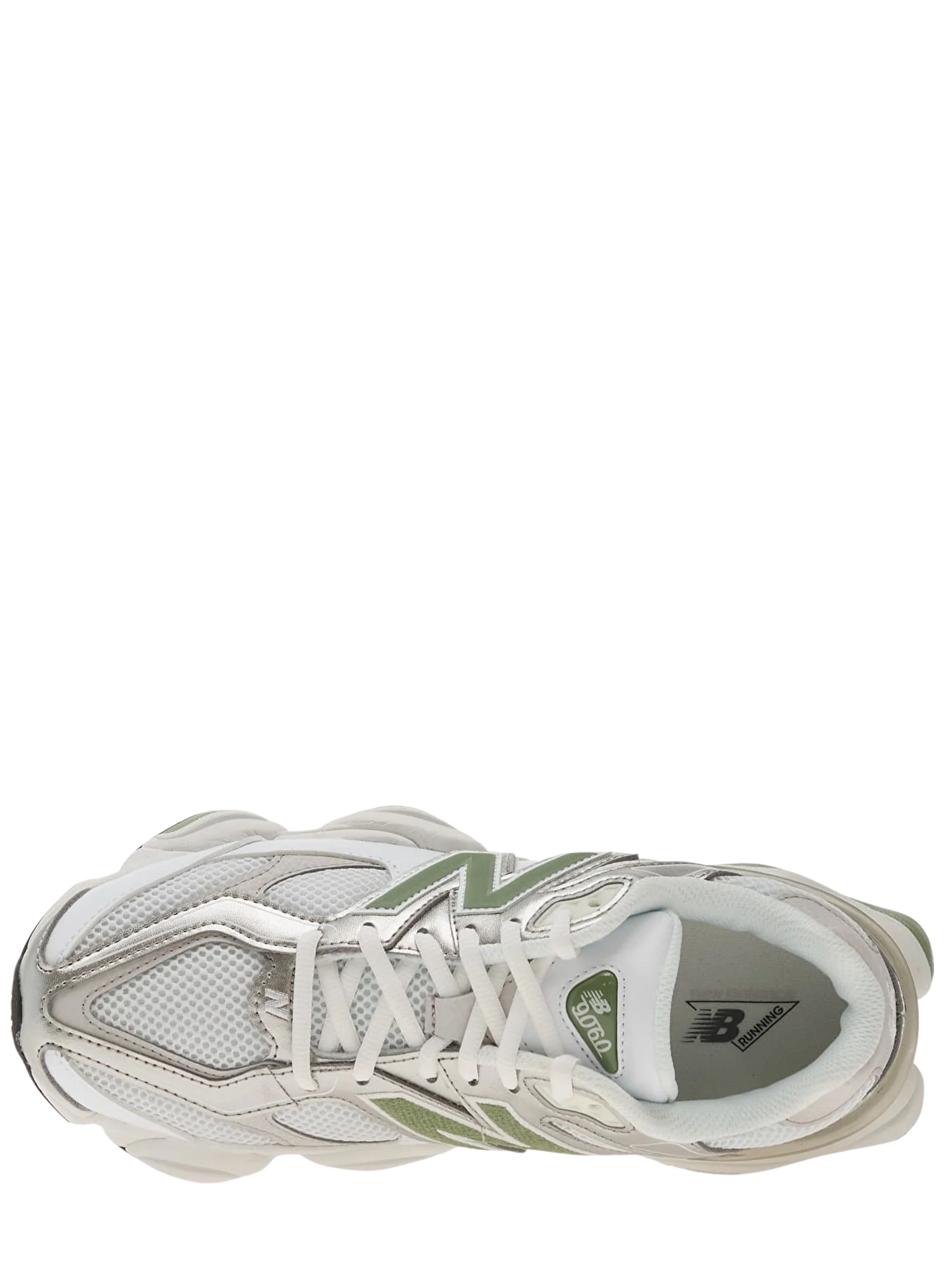 U 9060 Chunky sneaker by NEW BALANCE in white fabric and mesh, featuring lace-up closure, side logo, suede details, ABZORB midsole and rubber sole.
