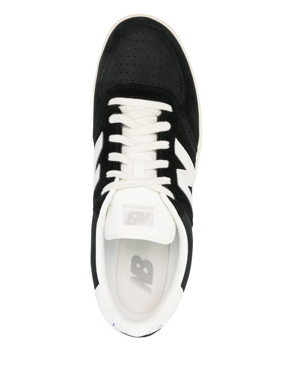 NEW BALANCE T500 sneaker in black suede and nubuck leather, logo, perforated round toe and white rubber sole.